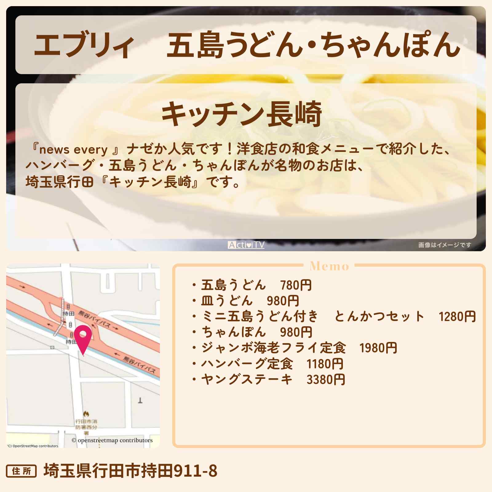 ハンバーグ・五島うどん・ちゃんぽん「キッチン長崎」