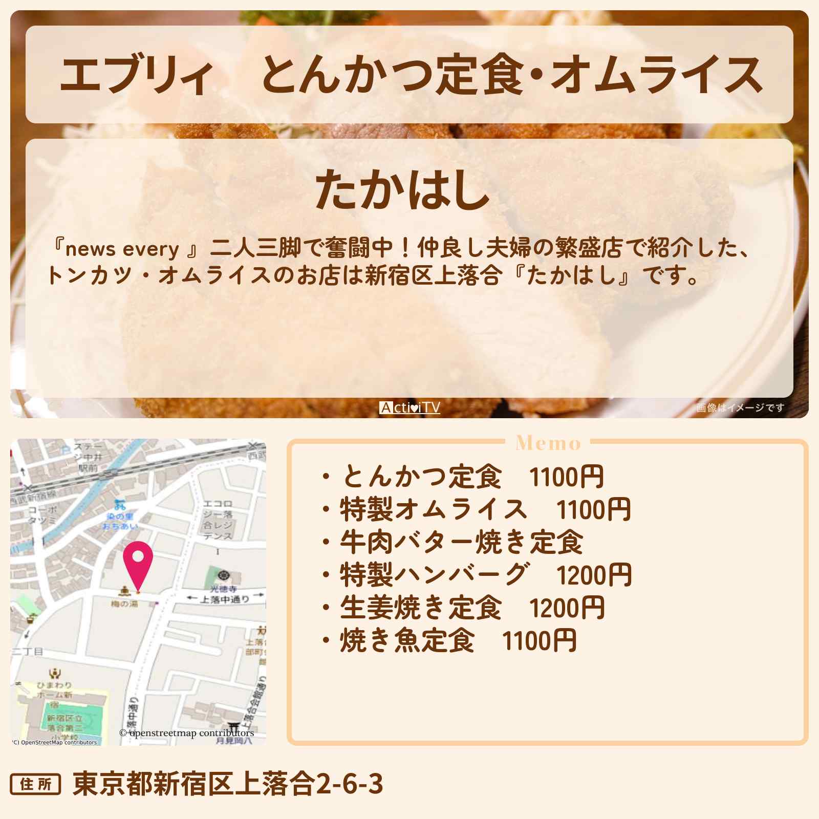 トンカツ・オムライス 中井駅「たかはし」