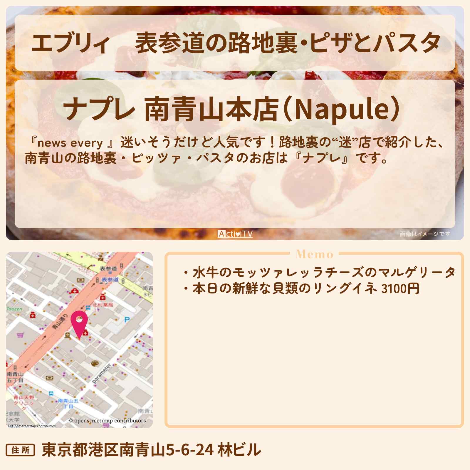 トラットリア ナプレ 南青山本店(表参道/イタリアン・フレンチ/パスタ・ピザ)の店舗情報・予約なら、お得なクーポン満載【ホットペッパーグルメ】!トラットリア ナプレ 南青山本店のおすすめポイントは、外……