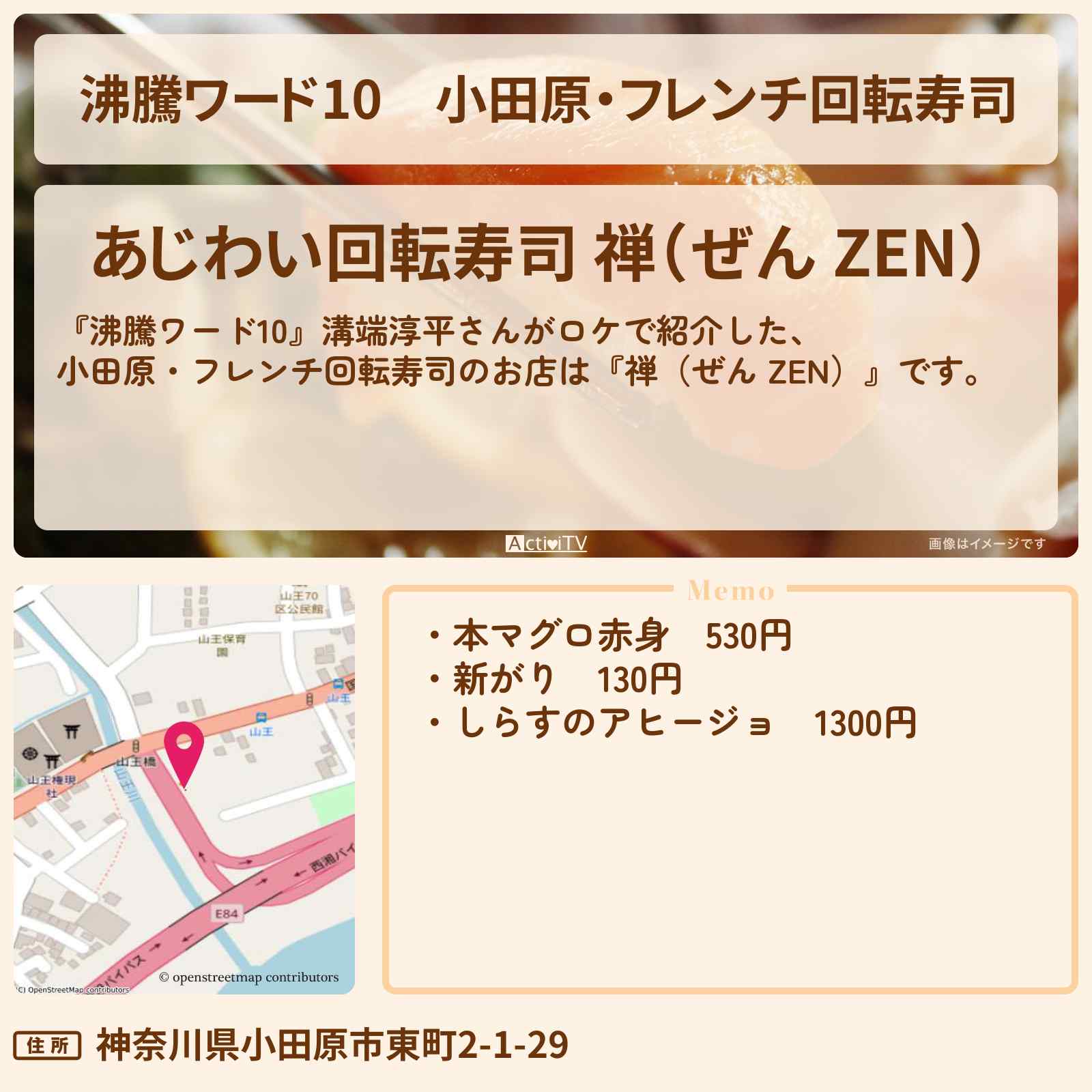 【沸騰ワード10】小田原・フレンチ回転寿司 溝端淳平『禅(ぜん ZEN)』のお店の場所