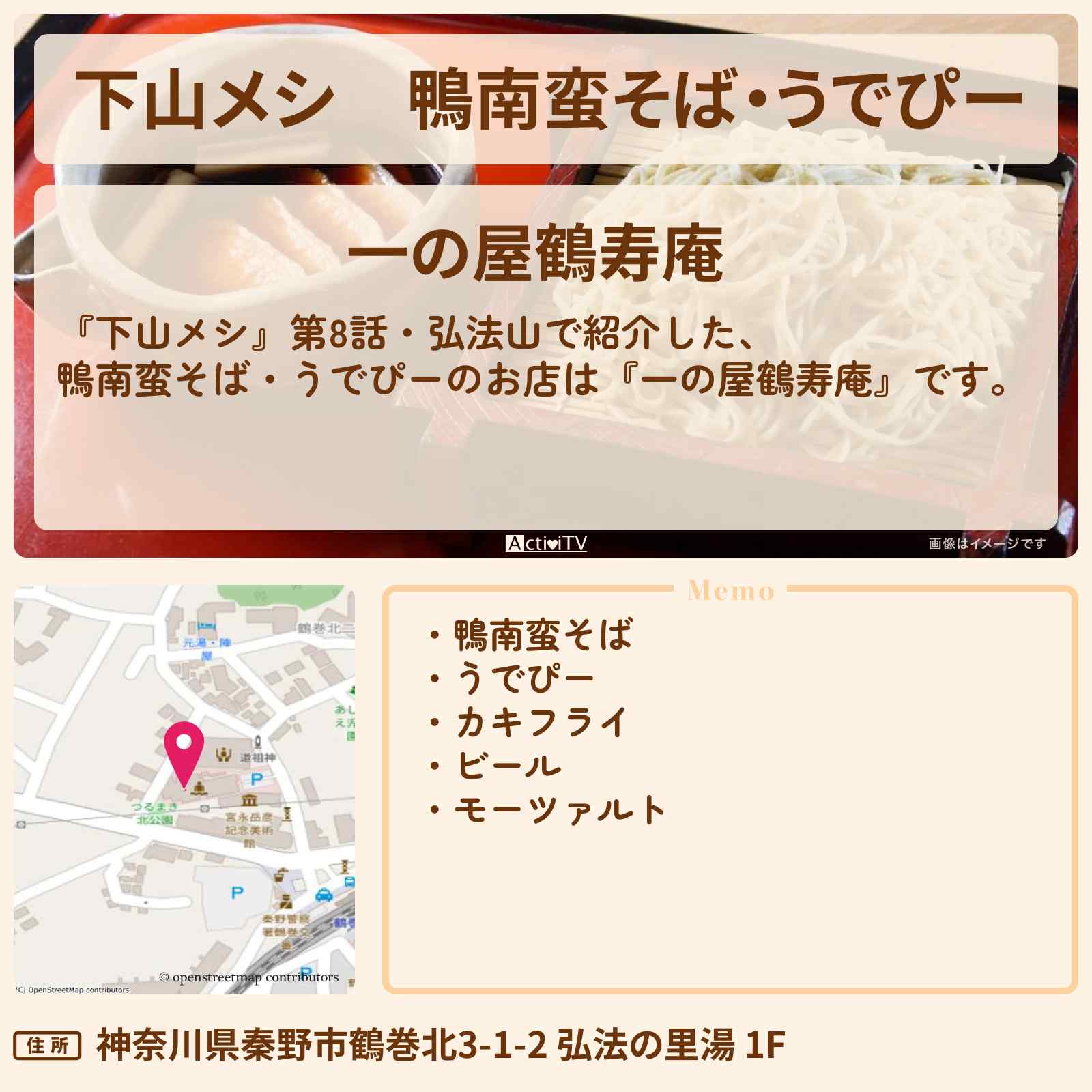 鴨南蛮そば・うでぴー 鶴巻温泉駅「一の屋鶴寿庵」