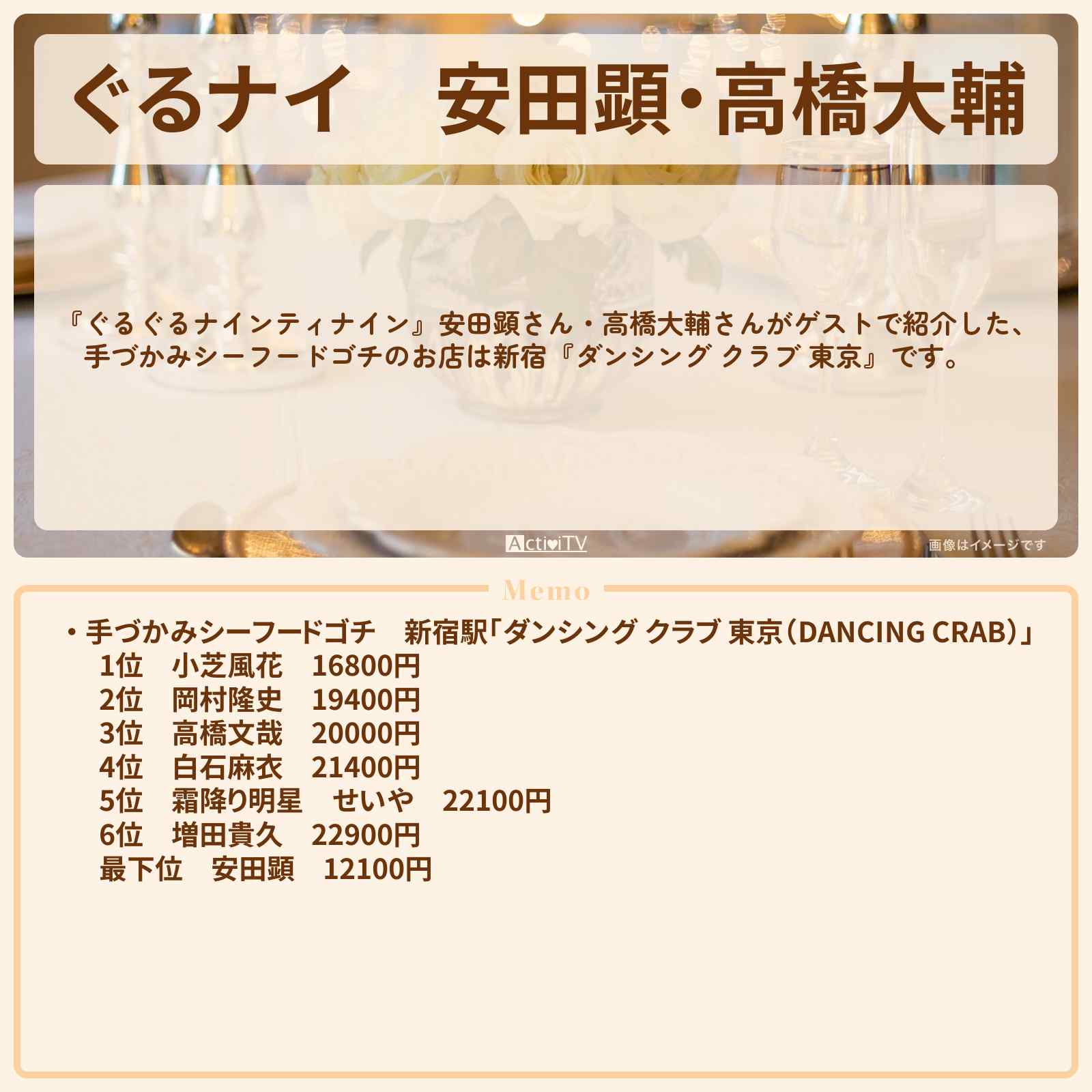 最下位 安田顕 12100円