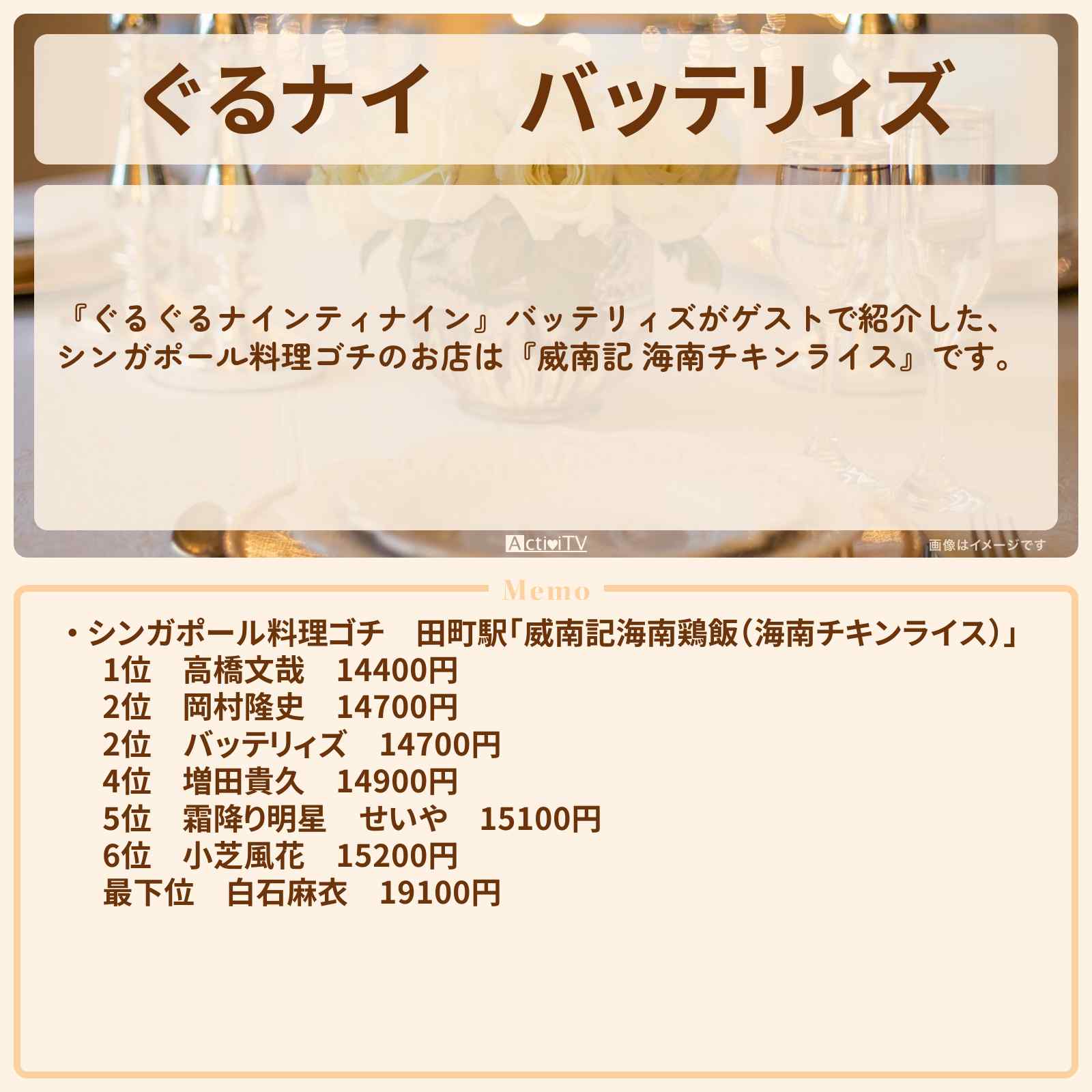 2位 岡村隆史 14700円