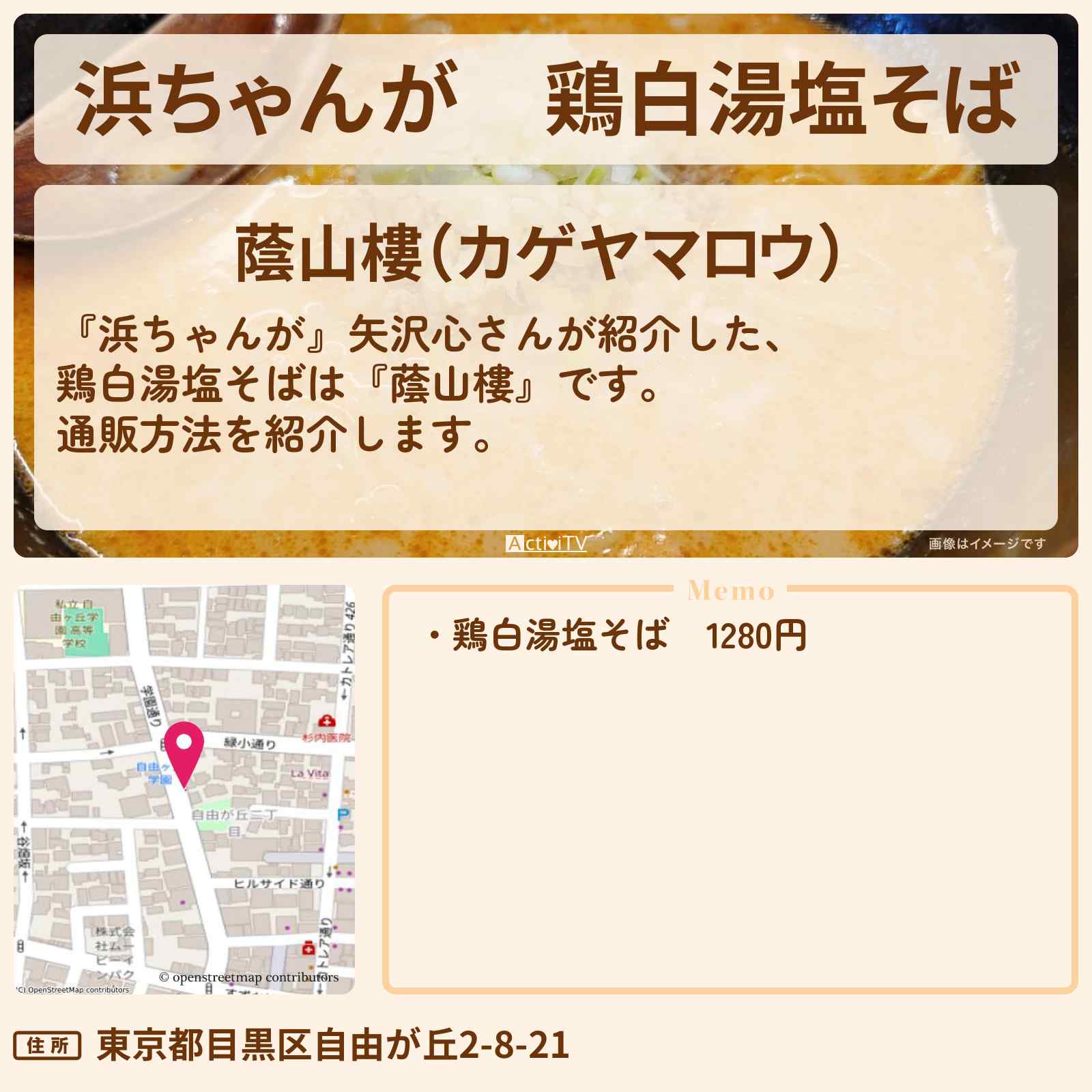 鶏白湯塩そば 自由が丘駅「蔭山樓(カゲヤマロウ)」