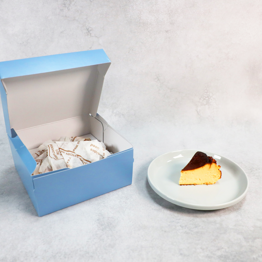 バスクチーズケーキは、1頭あたりの産乳量が少なく希少価値の高いジャージー牛の生クリームと北海道産の新鮮なクリームチーズを使用した贅沢な逸品です。高温で一気に焼き上げることで、外側に香ばしい焼き目を付け、中はとろけるようになめらかな食感を実現しています。