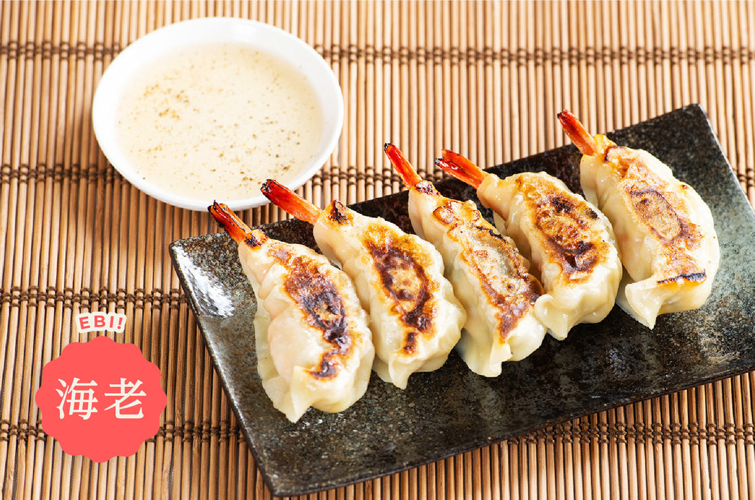 - 海老丸ごと1尾を厳選した国産キャベツや豚肉で作った餡で包んだ餃子