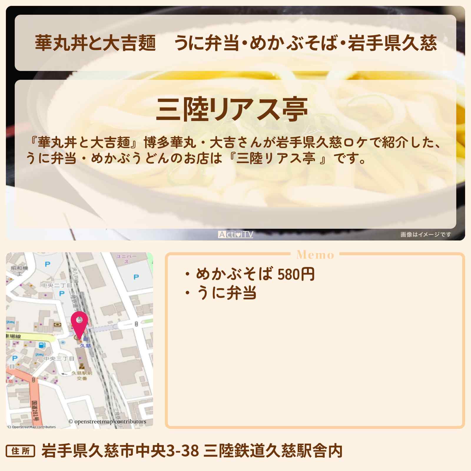 | 住所 | 岩手県久慈市中央3-38 三陸鉄道久慈駅舎内 |