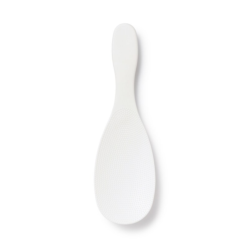 ご飯がベタッとくっつきにくいエンボス加工と、絶妙なカーブで、炊き立てのご飯もスムーズにすくえます。まるでご飯がしゃもじの上を滑るように、ストレスフリーな盛り付けを実現します。
