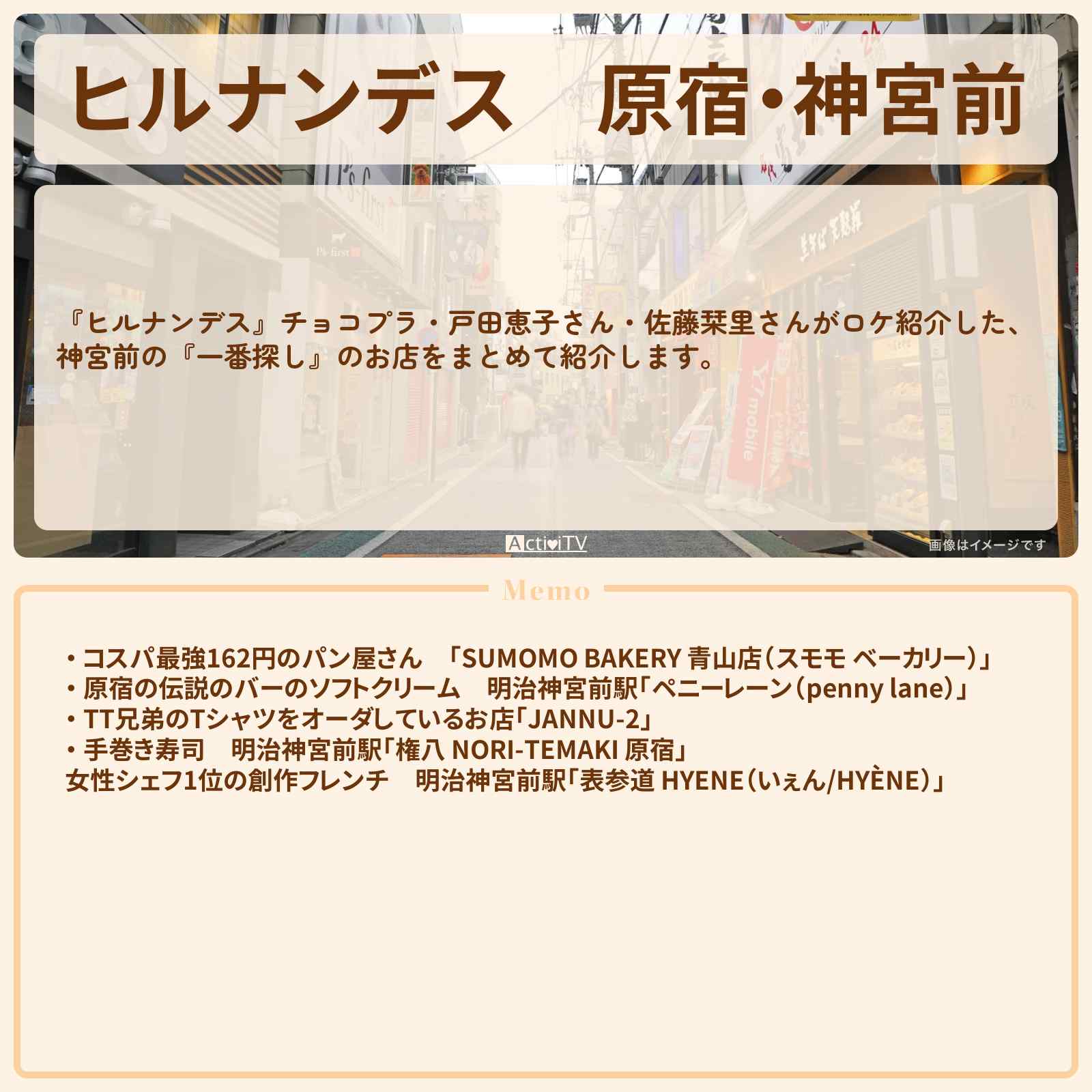 コスパ最強162円のパン屋さんのスモモ ベーカリー、チョコプラ行きつけのお店で「T」グッズ作りをしたJANNU-2、あずきソフトクリームのペニーレイン、手巻き寿司専門店の権八 NORI-TEMAKIなどを紹介しました。