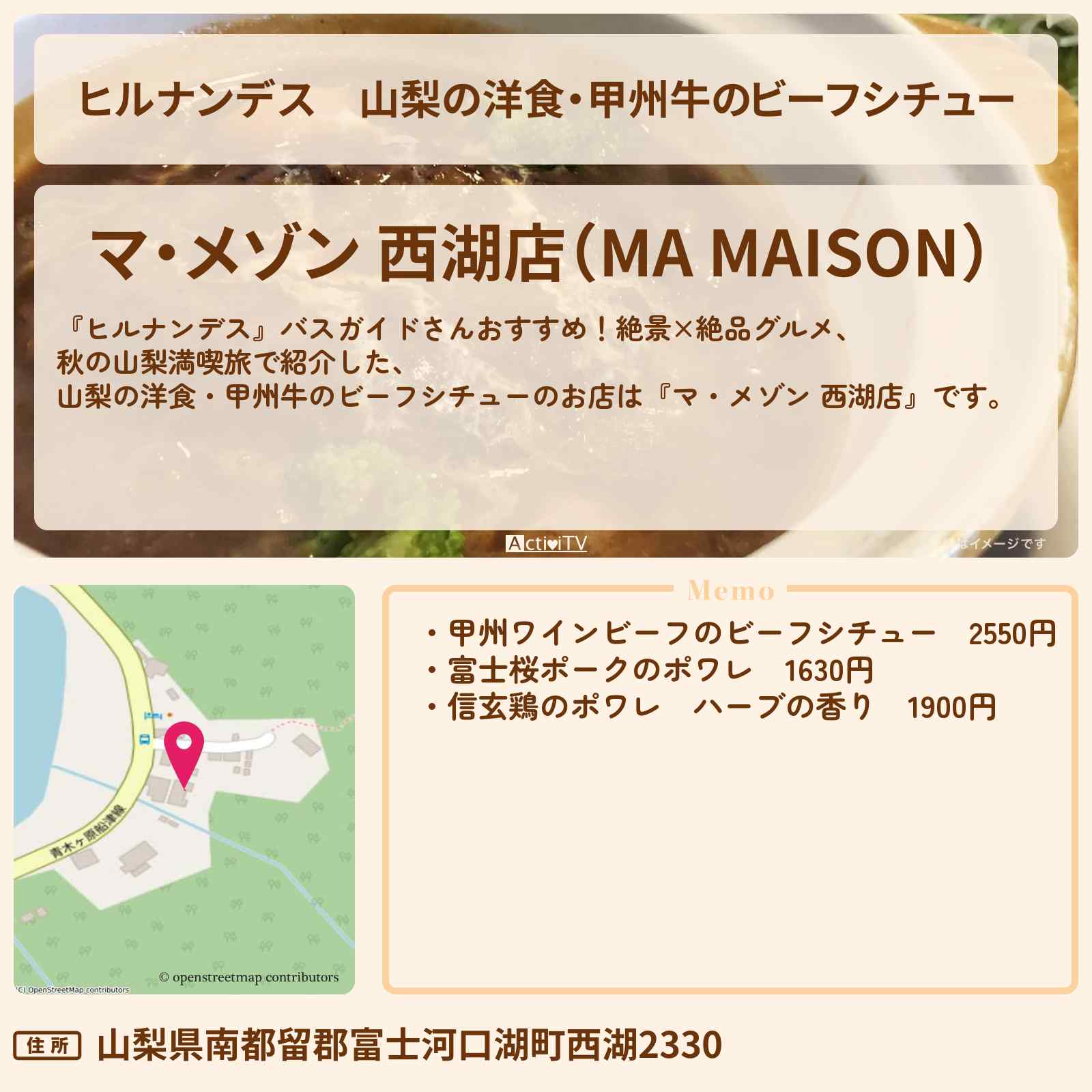 甲州牛のビーフシチュー「マ・メゾン 西湖店(MA MAISON)」