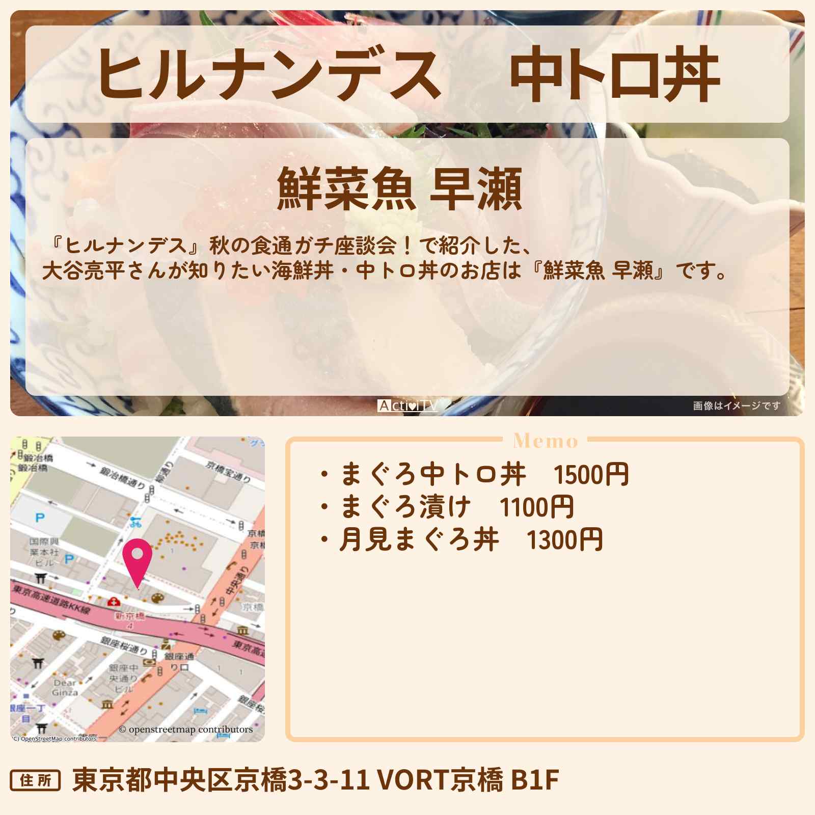 中トロ丼 銀座一丁目駅「鮮菜魚 早瀬」