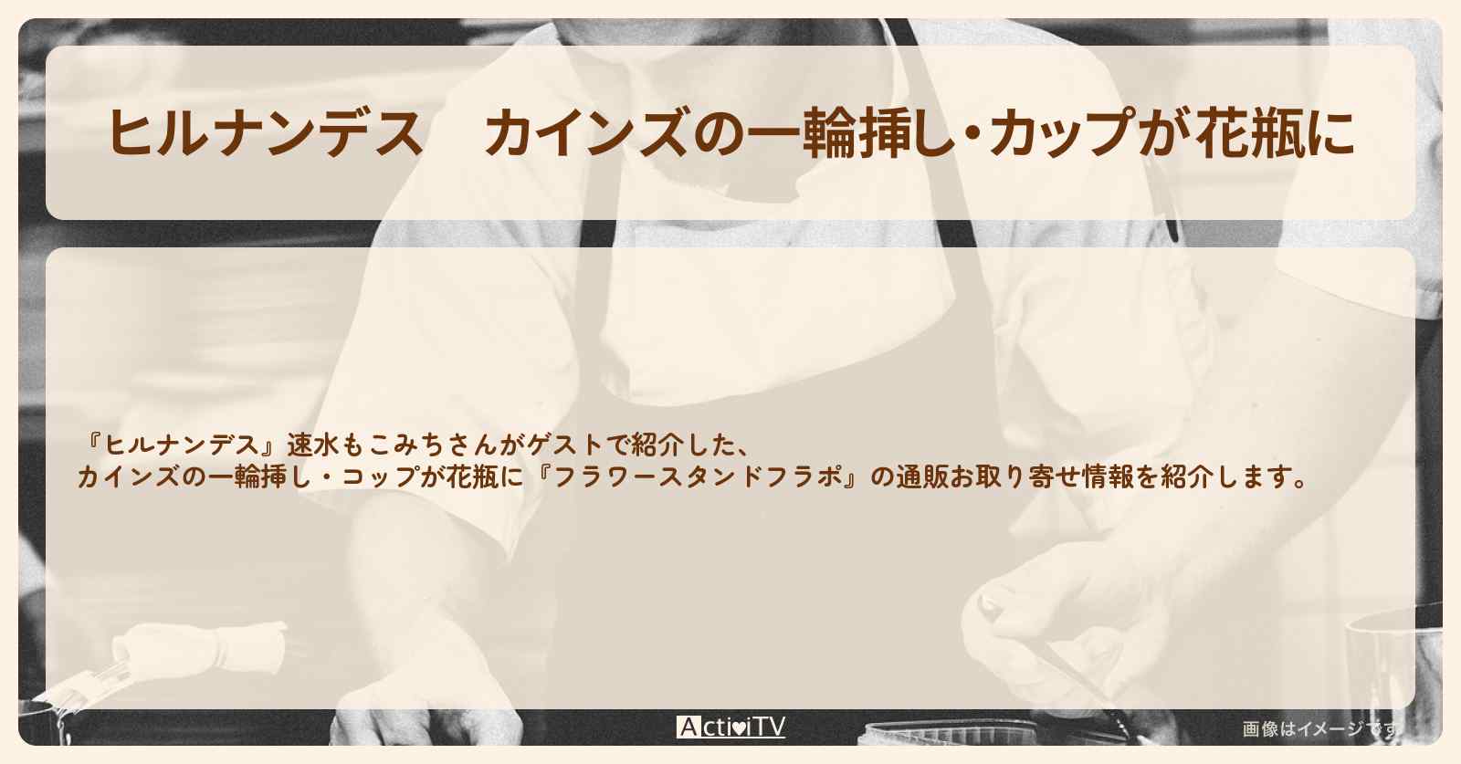 放送の【ヒルナンデス】速水もこみちさんがゲストで紹介した、カインズの一輪挿し・コップが花瓶に『フラワースタンドフラポ』の通販お取り寄せ情報を紹介します。