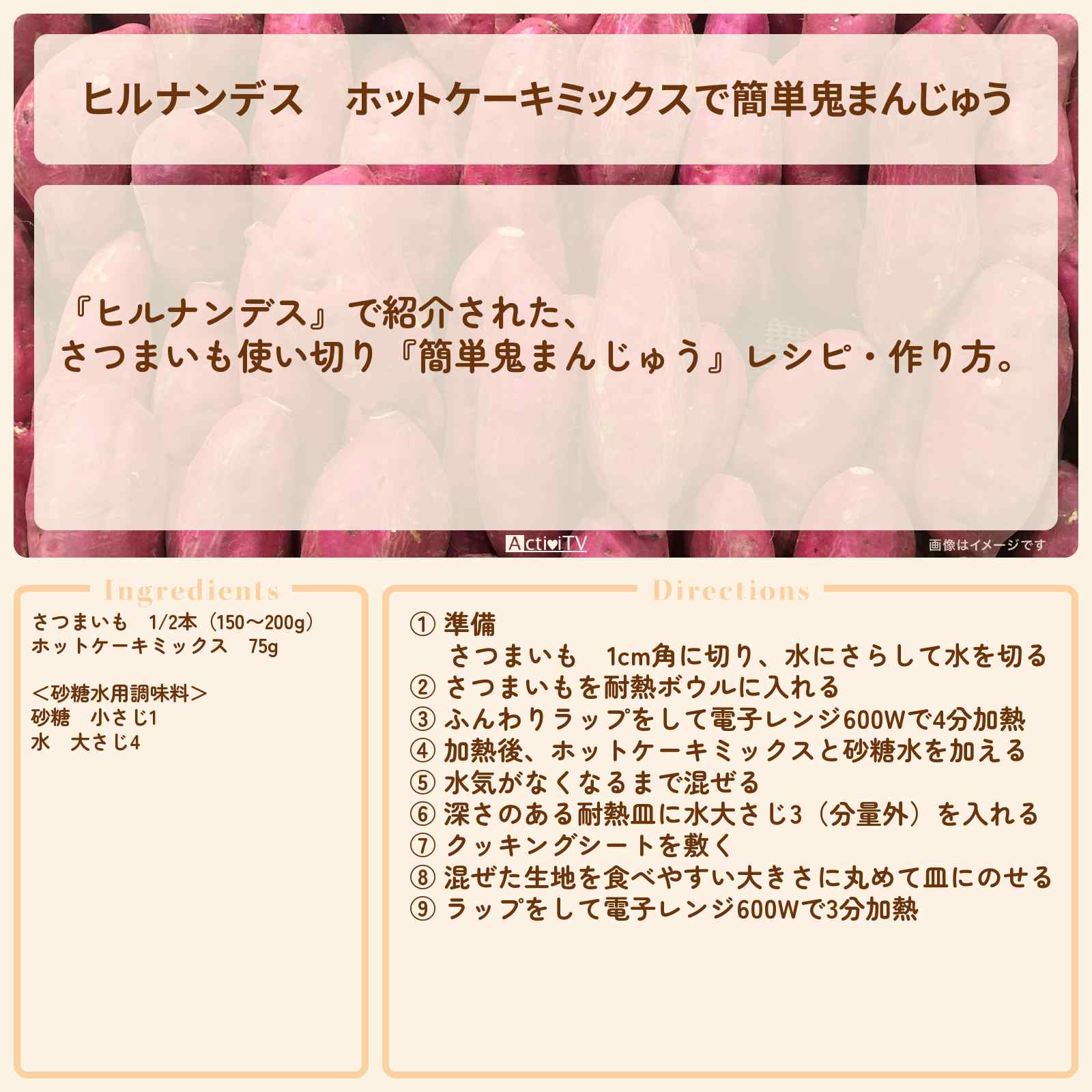 放送の【ヒルナンデス】で紹介された、さつまいも使い切り『簡単鬼まんじゅう』レシピ・作り方。