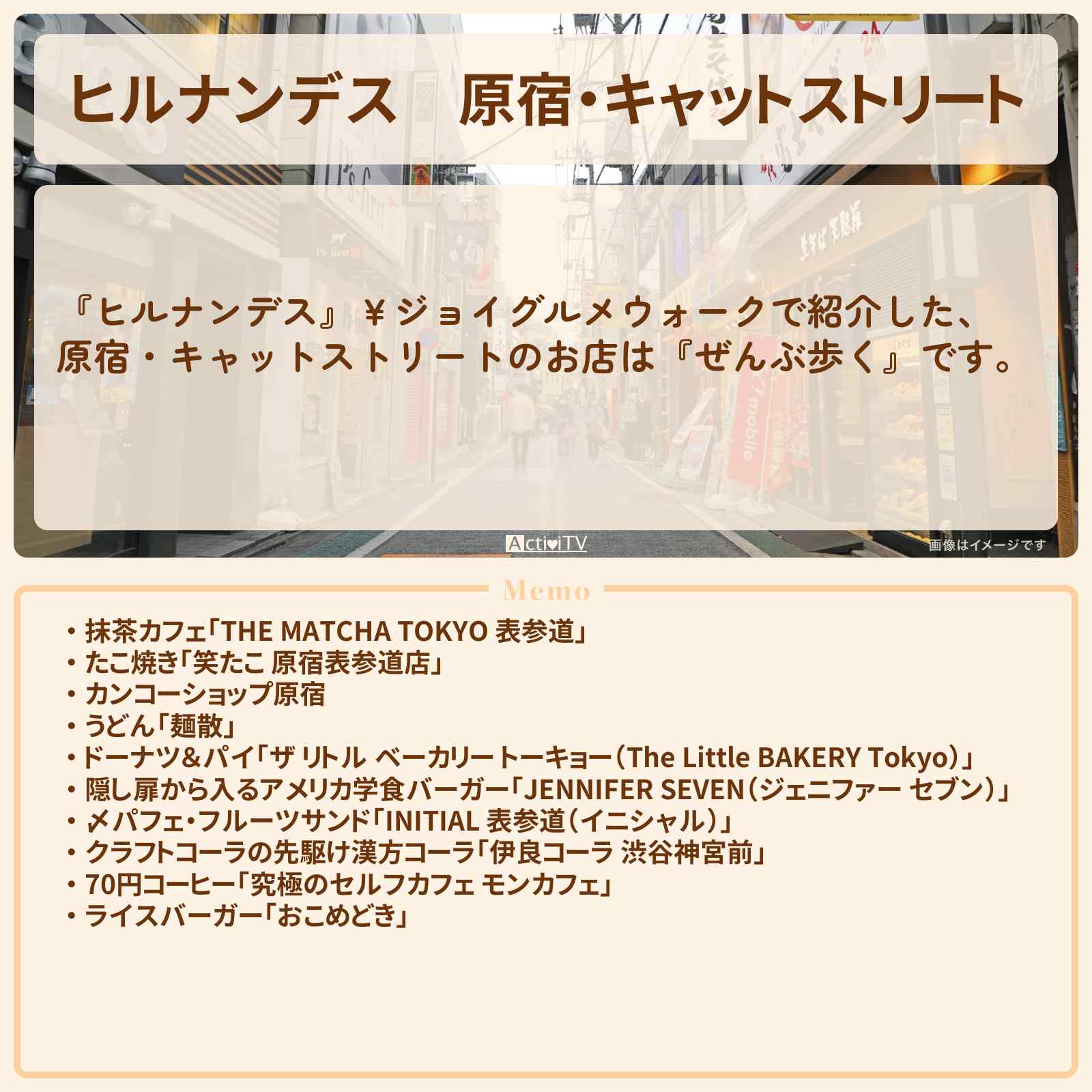 原宿・キャットストリートを全部歩いて穴場グルメを食べ歩きする企画で、たこ焼きの笑たこ・オーガニック抹茶専門店のTHE MATCHA TOKYO・レトロなベーカリー・70円コーヒーのモンカフェ・アップルパイのザ リトル ベーカリー トーキョー・隠れ家ハンバーガーのジェニファー セブン・北海道初の〆パフェのINITIALなどのお店を巡りました。