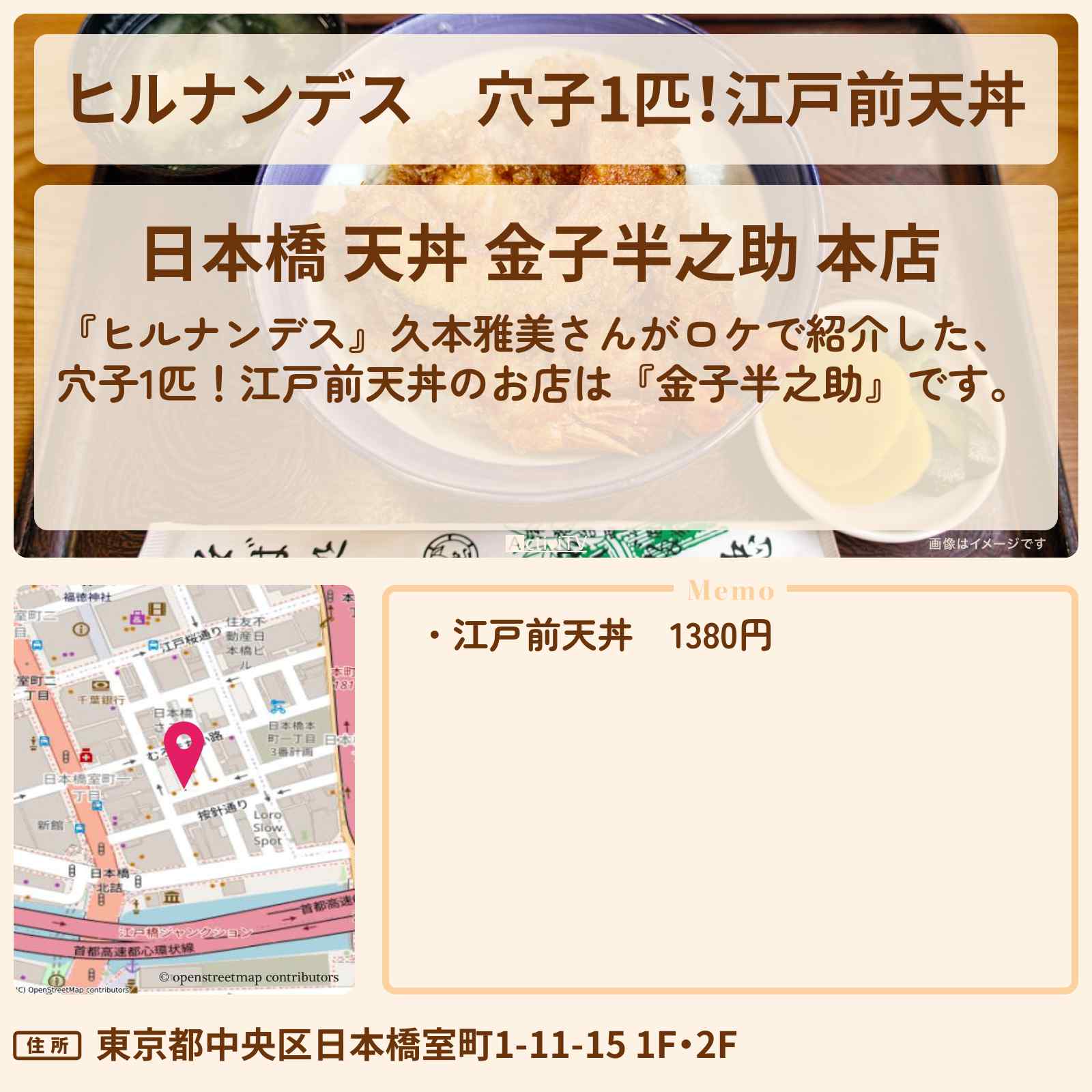 | 住所 | 東京都中央区日本橋室町1-11-15 1F・2F |