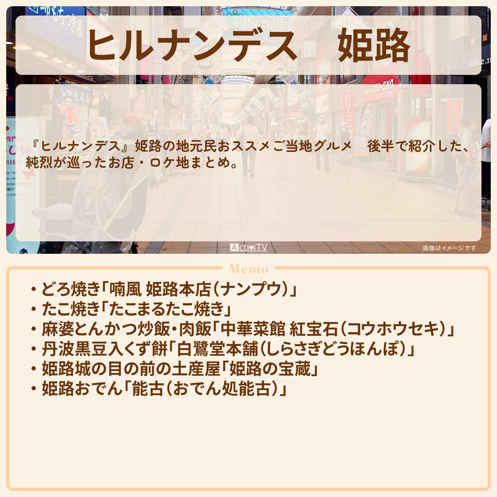 純烈 姫路『ご当地グルメ探し』前半のロケ地まとめはこちら