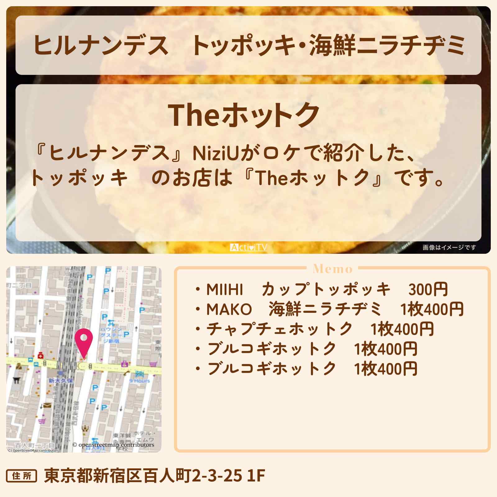 【ヒルナンデス】トッポッキ・海鮮ニラチヂミ NiziU『Theホットク』新大久保のお店情報〔MAKO・MIIHI〕