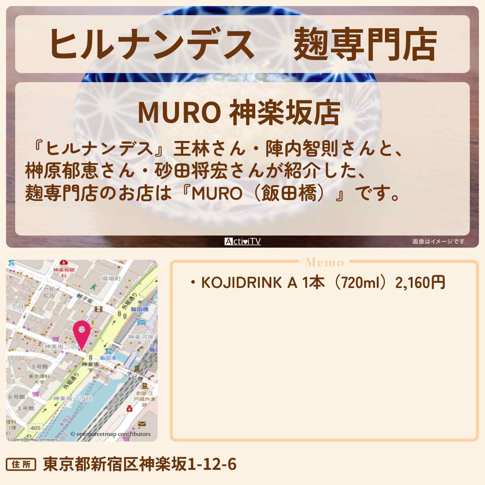 MURO 神楽坂店の特徴は、全国から取り寄せた約90種類の甘酒を常時取り扱っている点です。