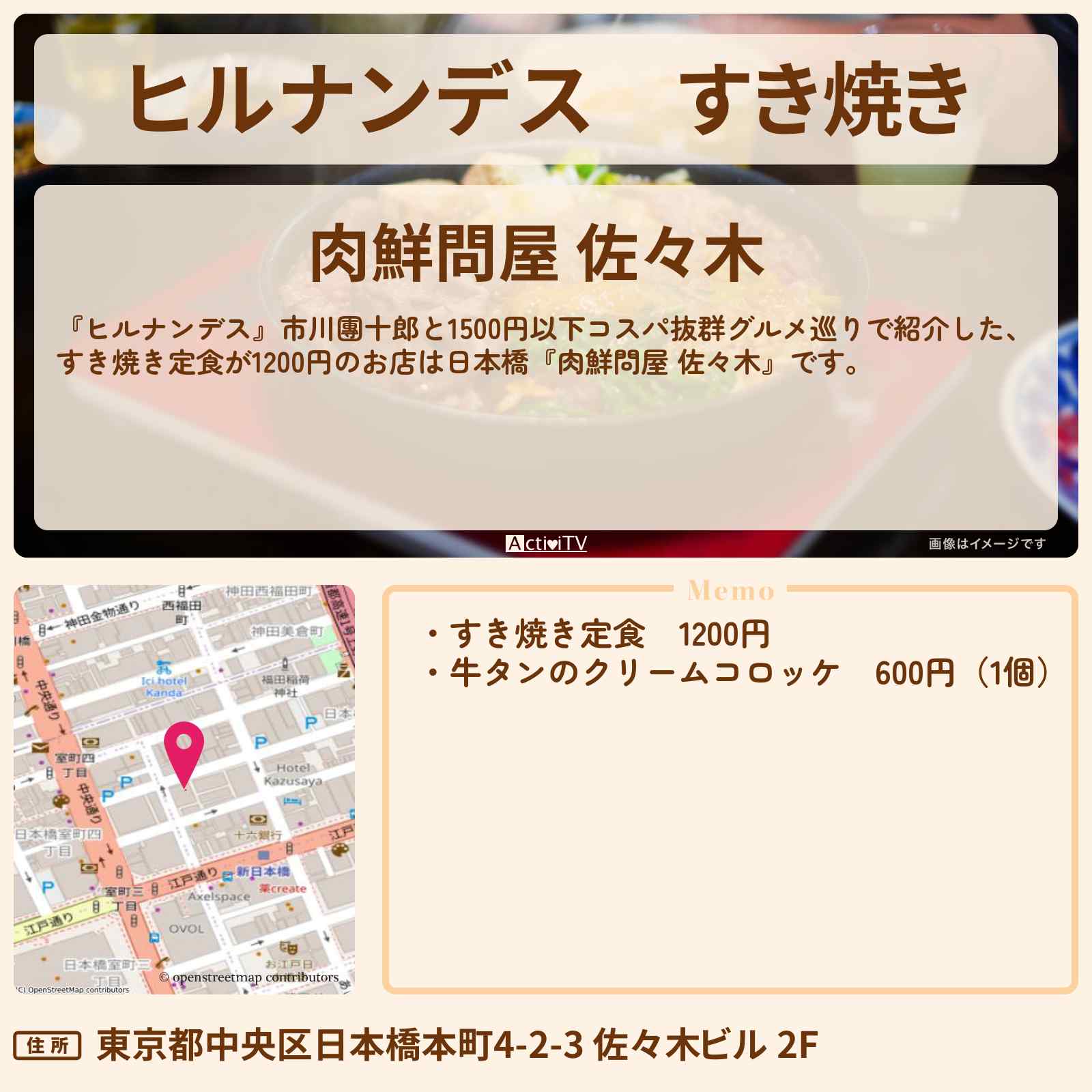 すき焼き定食 新日本橋駅「肉鮮問屋 佐々木」