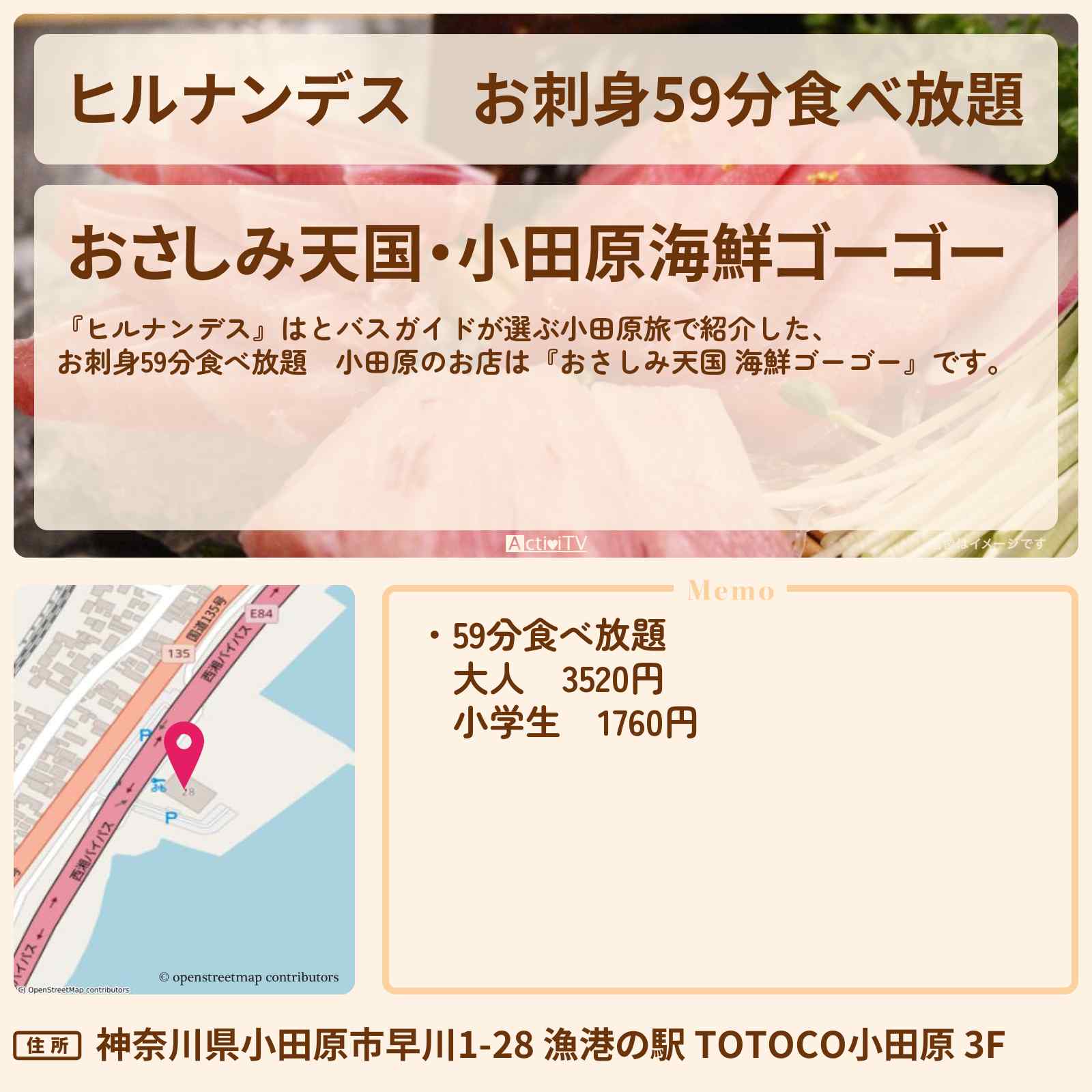 お刺身59分食べ放題 早川駅「おさしみ天国・小田原海鮮ゴーゴー」