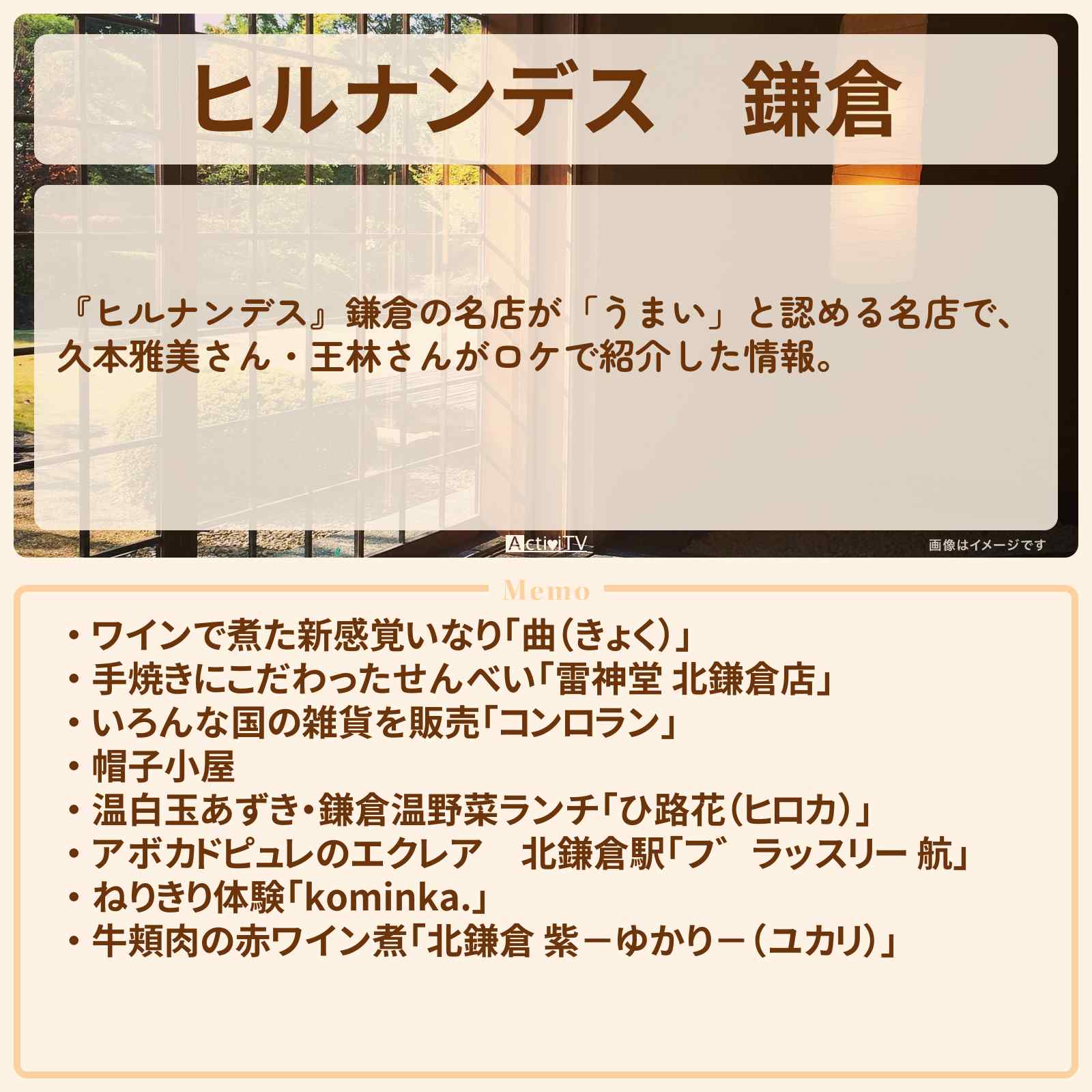 | 住所 | 神奈川県鎌倉市山ノ内374番地 1階 |