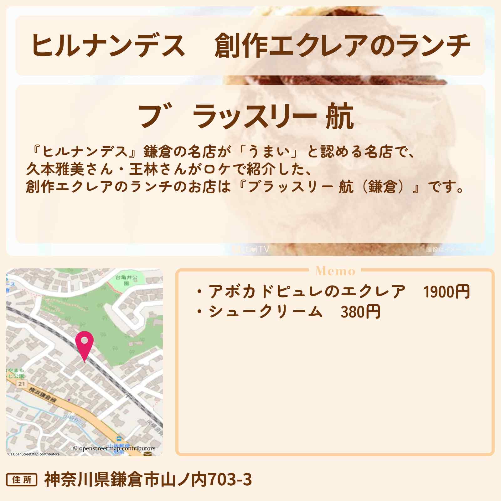 アボカドピュレのエクレア 北鎌倉駅「ブラッスリー 航」