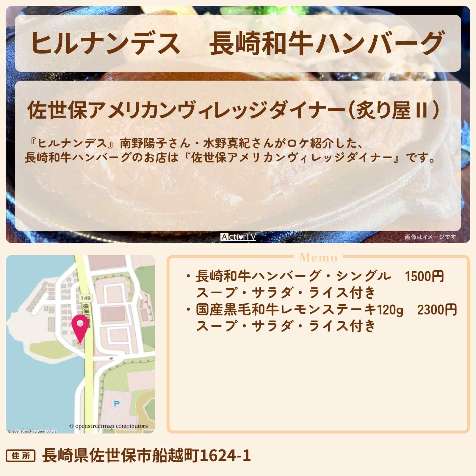 長崎和牛ハンバーグ「佐世保アメリカンヴィレッジダイナー(炙り屋Ⅱ)」