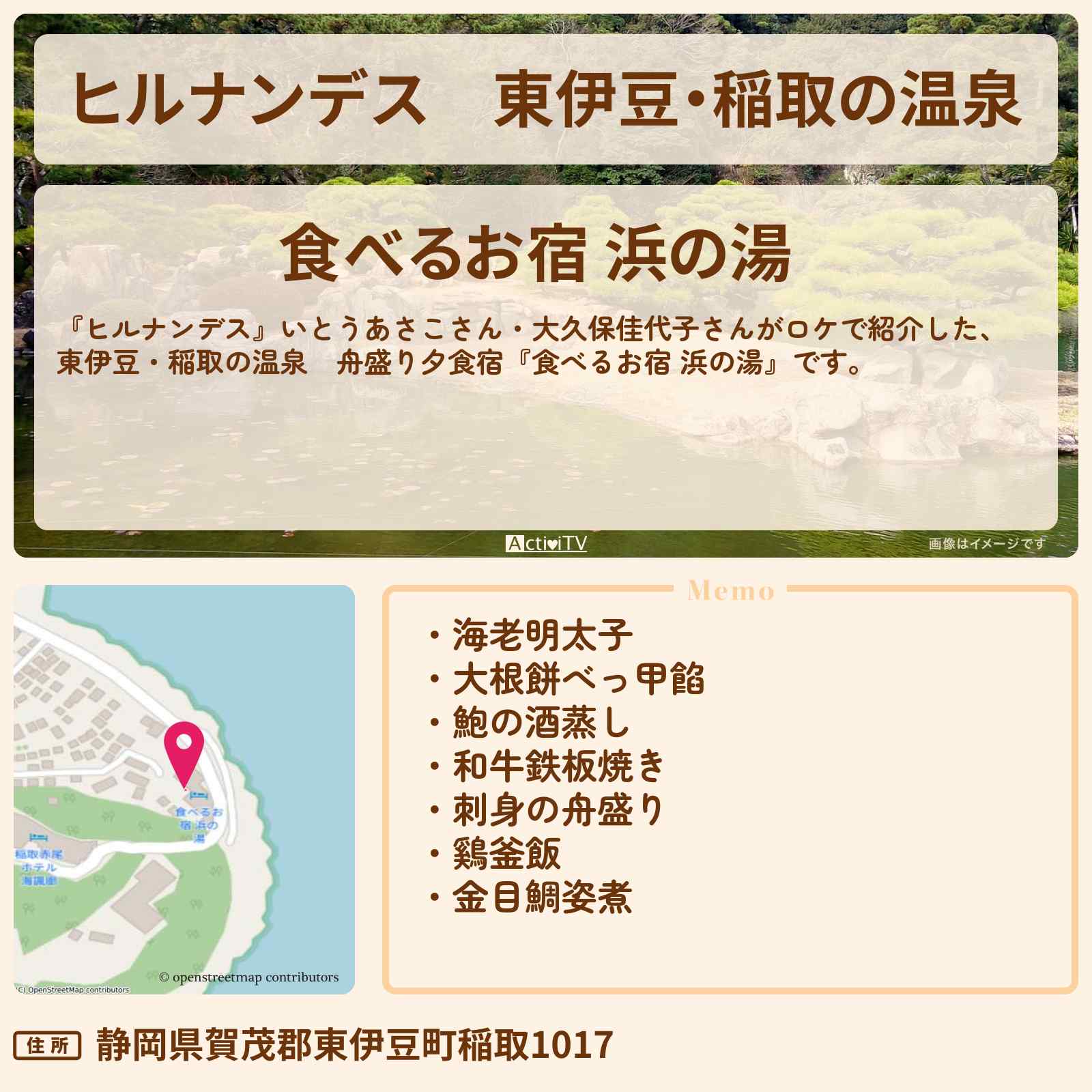 | 住所 | 静岡県賀茂郡東伊豆町稲取1017 |