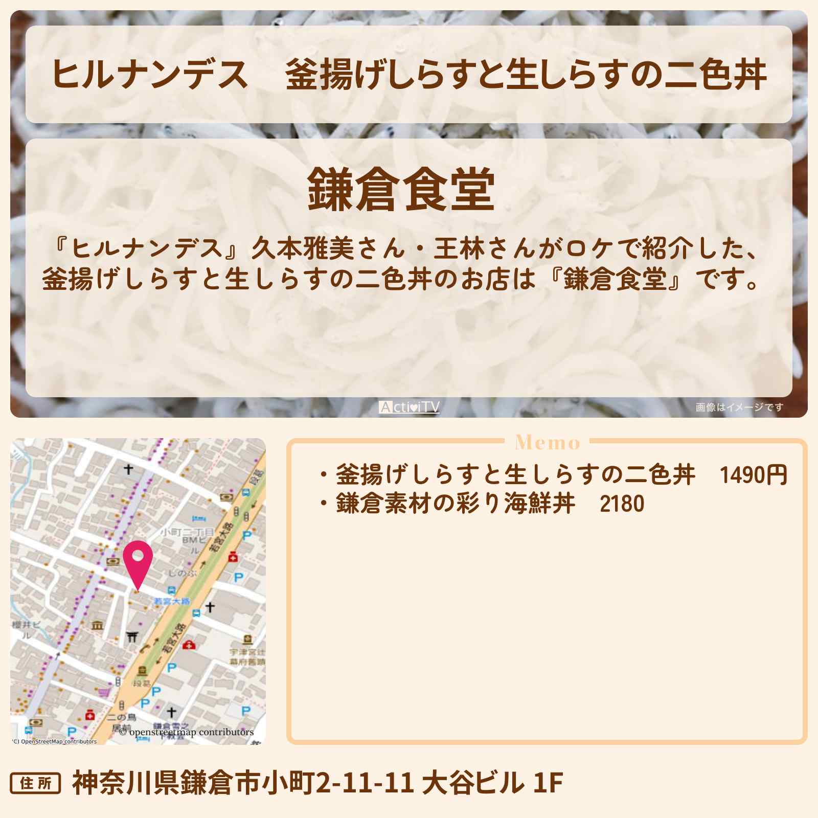 | 住所 | 神奈川県鎌倉市小町2-11-11 大谷ビル 1F |