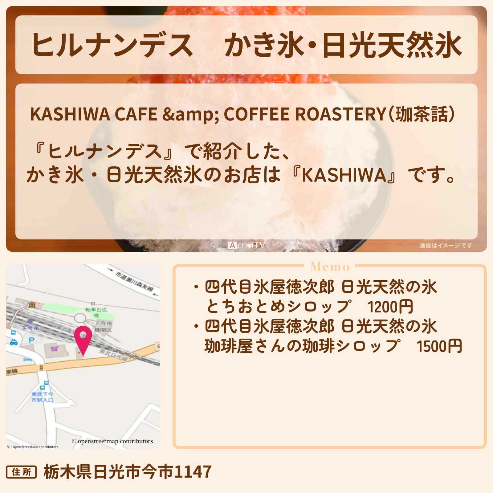 かき氷・日光天然氷「KASHIWA CAFE & COFFEE ROASTERY(珈茶話)」