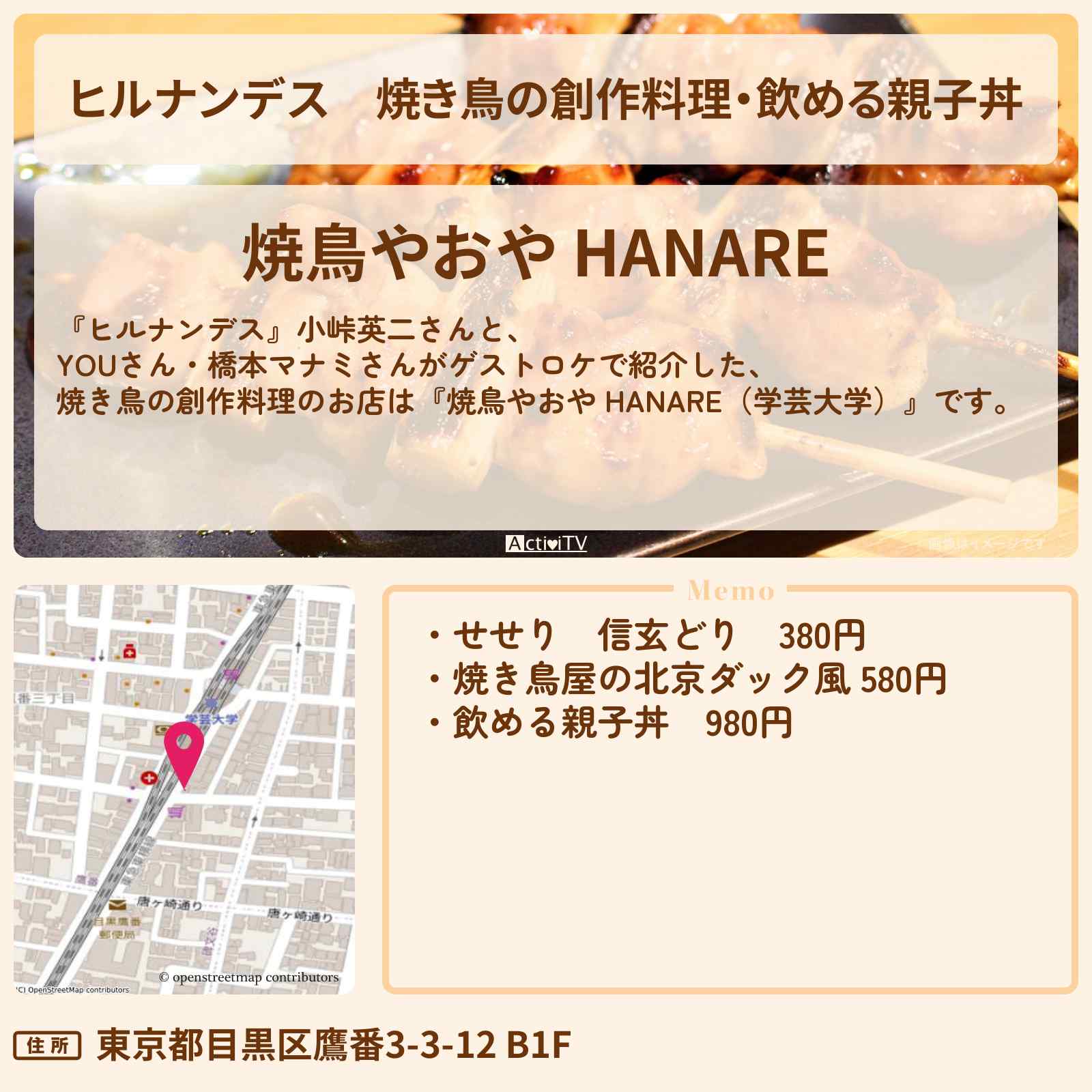 焼き鳥の創作料理「焼鳥やおや HANARE」