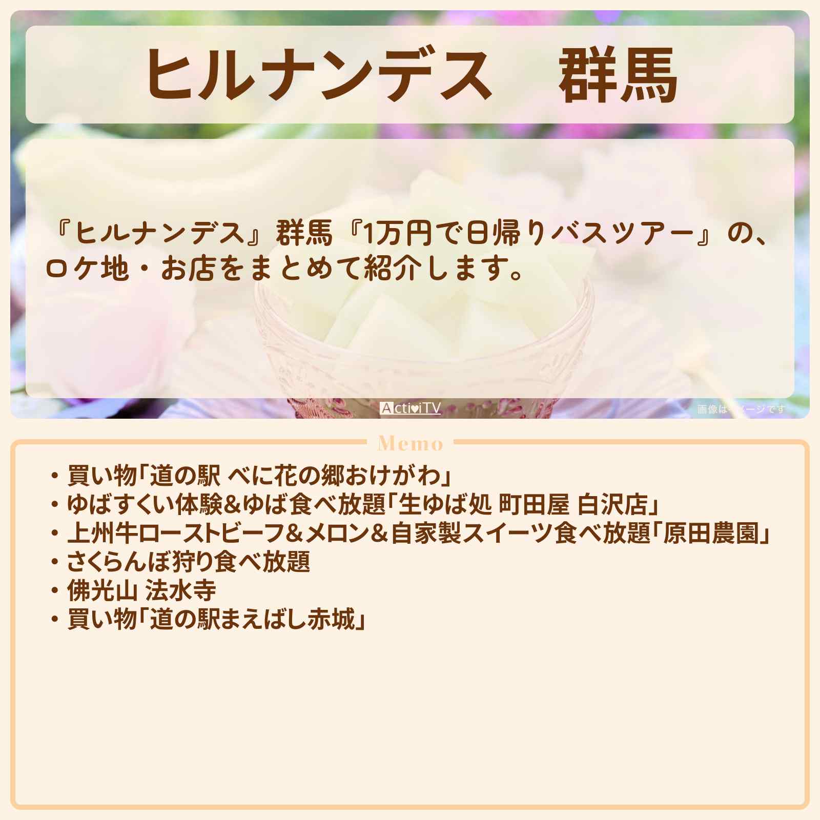 13480円で完熟メロン・旬のさくらんぼ・上州牛ローストビーフ・湯葉の豪華食べ放題バスツアーを紹介しました。