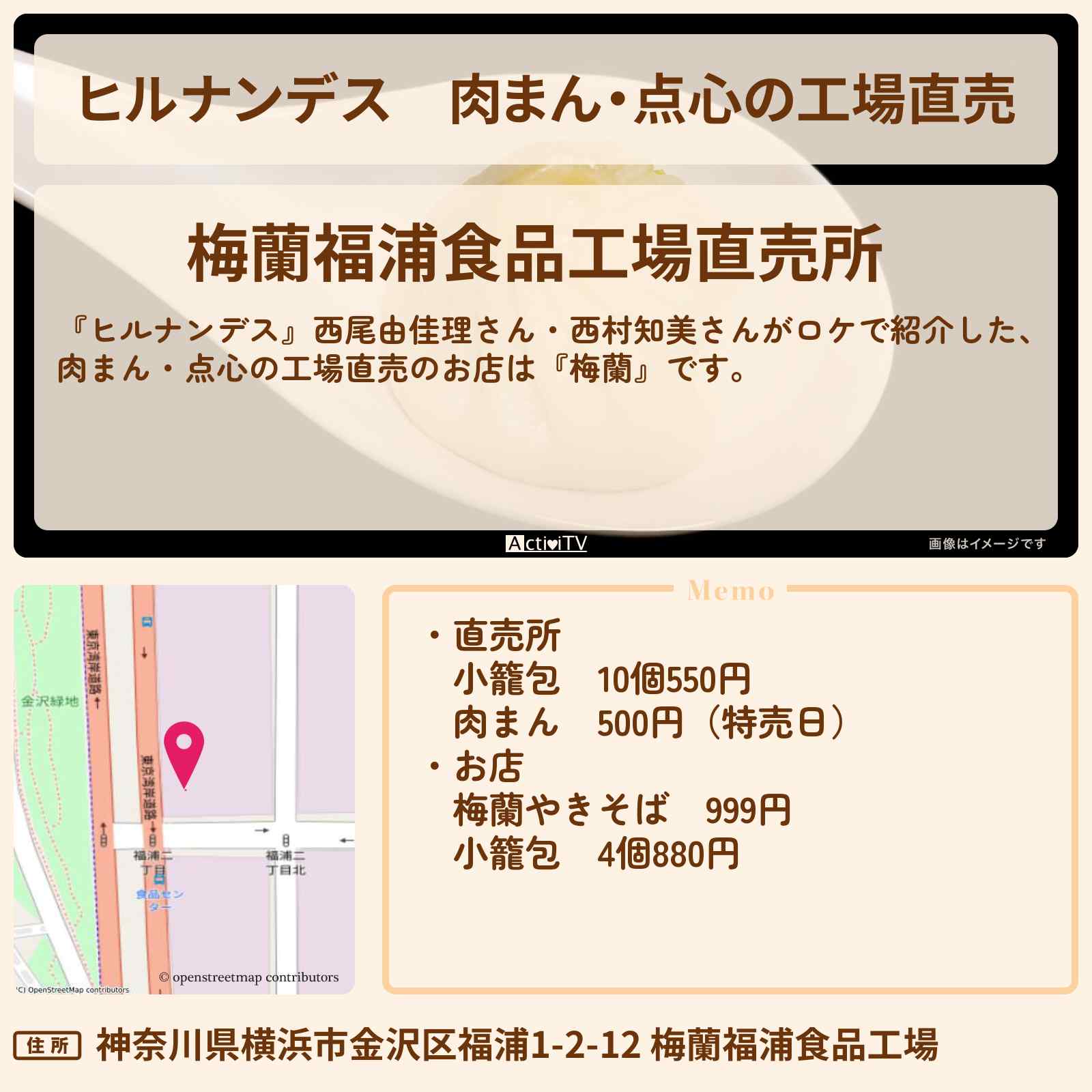 | 住所 | 神奈川県横浜市金沢区福浦1-2-12 梅蘭福浦食品工場 |
