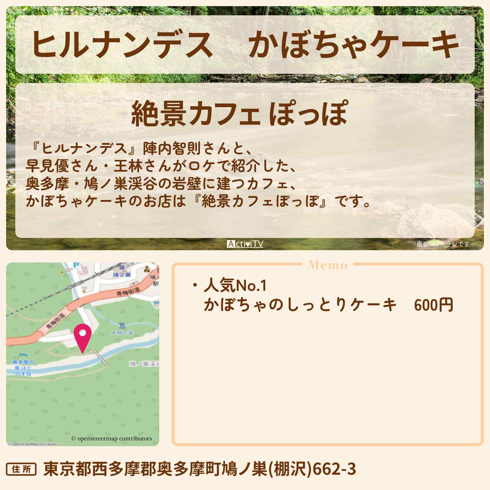 かぼちゃケーキ 鳩ノ巣駅「絶景カフェ ぽっぽ」