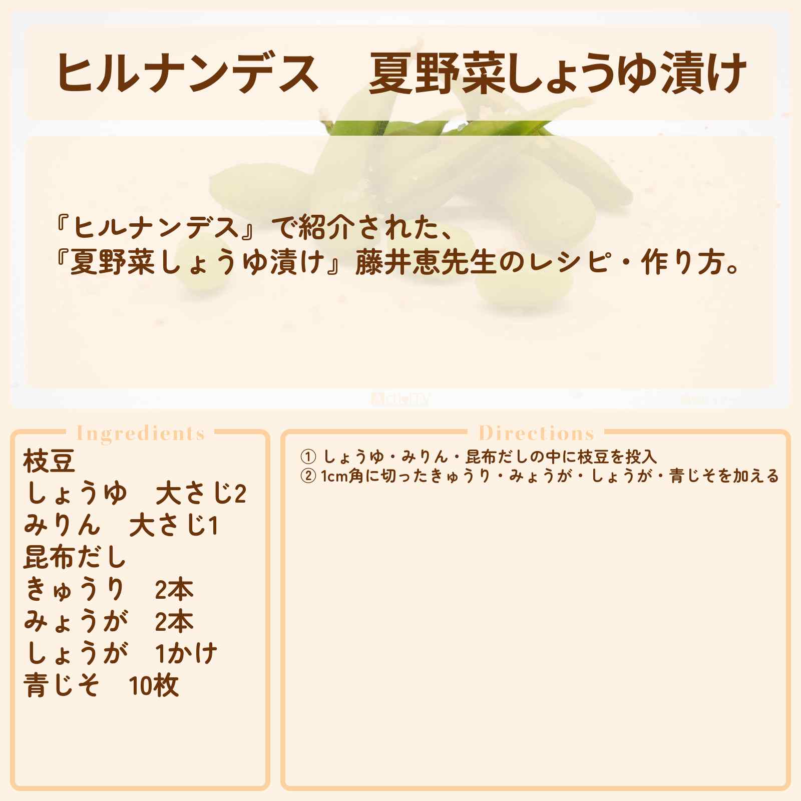 放送の【ヒルナンデス】で紹介された、『夏野菜しょうゆ漬け』藤井恵先生のレシピ・作り方。