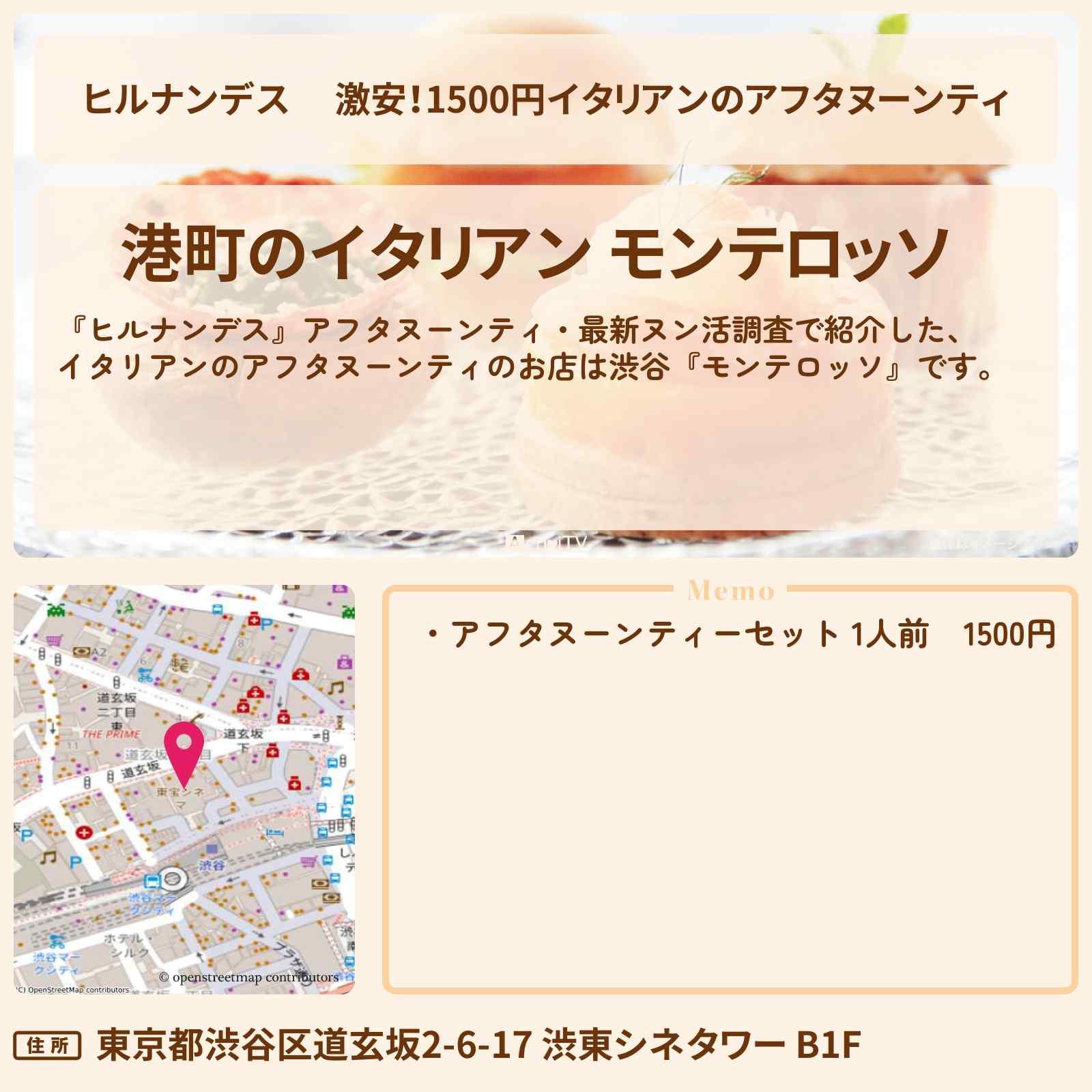 イタリアンのアフタヌーンティ 渋谷駅「港町のイタリアン モンテロッソ」