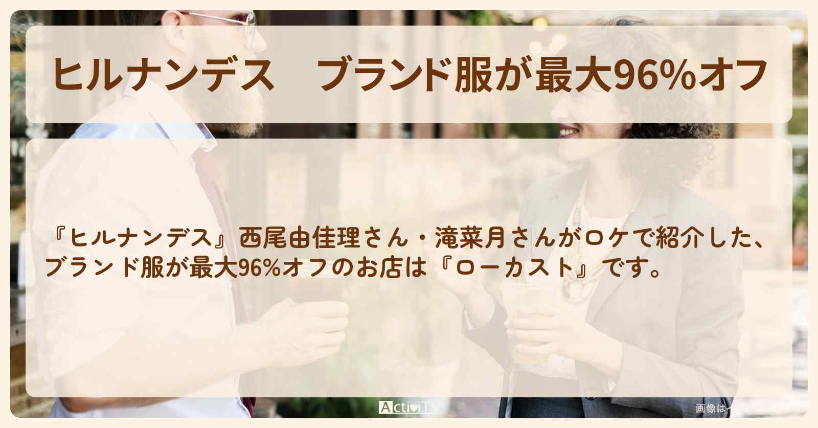 放送の【ヒルナンデス】西尾由佳理さん・滝菜月さんがロケで紹介した、ブランド服が最大96%オフのお店は『ローカスト』です。
