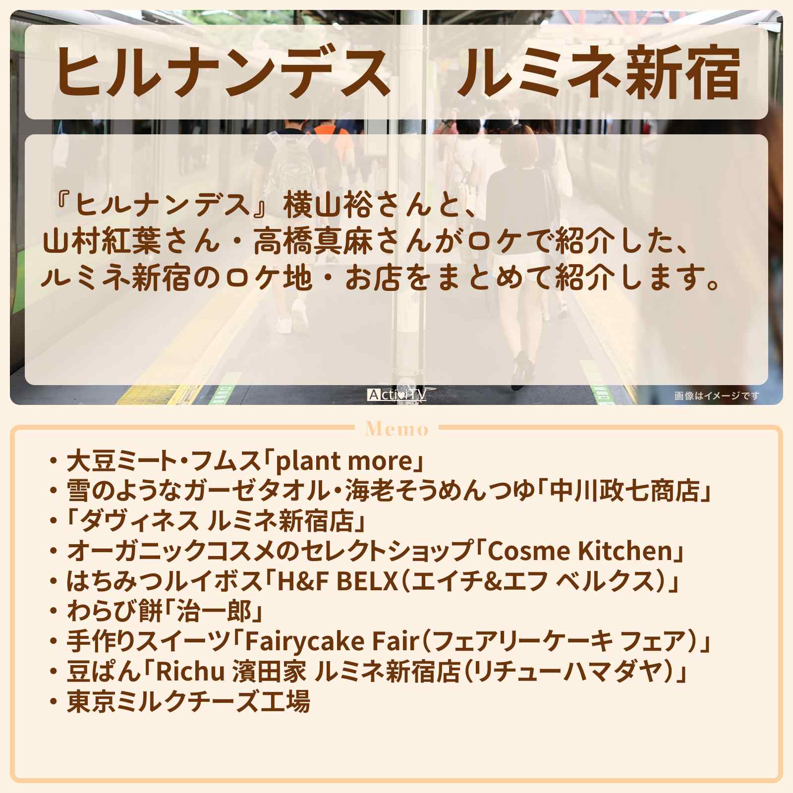 | 住所 | 東京都新宿区西新宿1-1-5 ルミネ新宿LUMINE1 B2F |