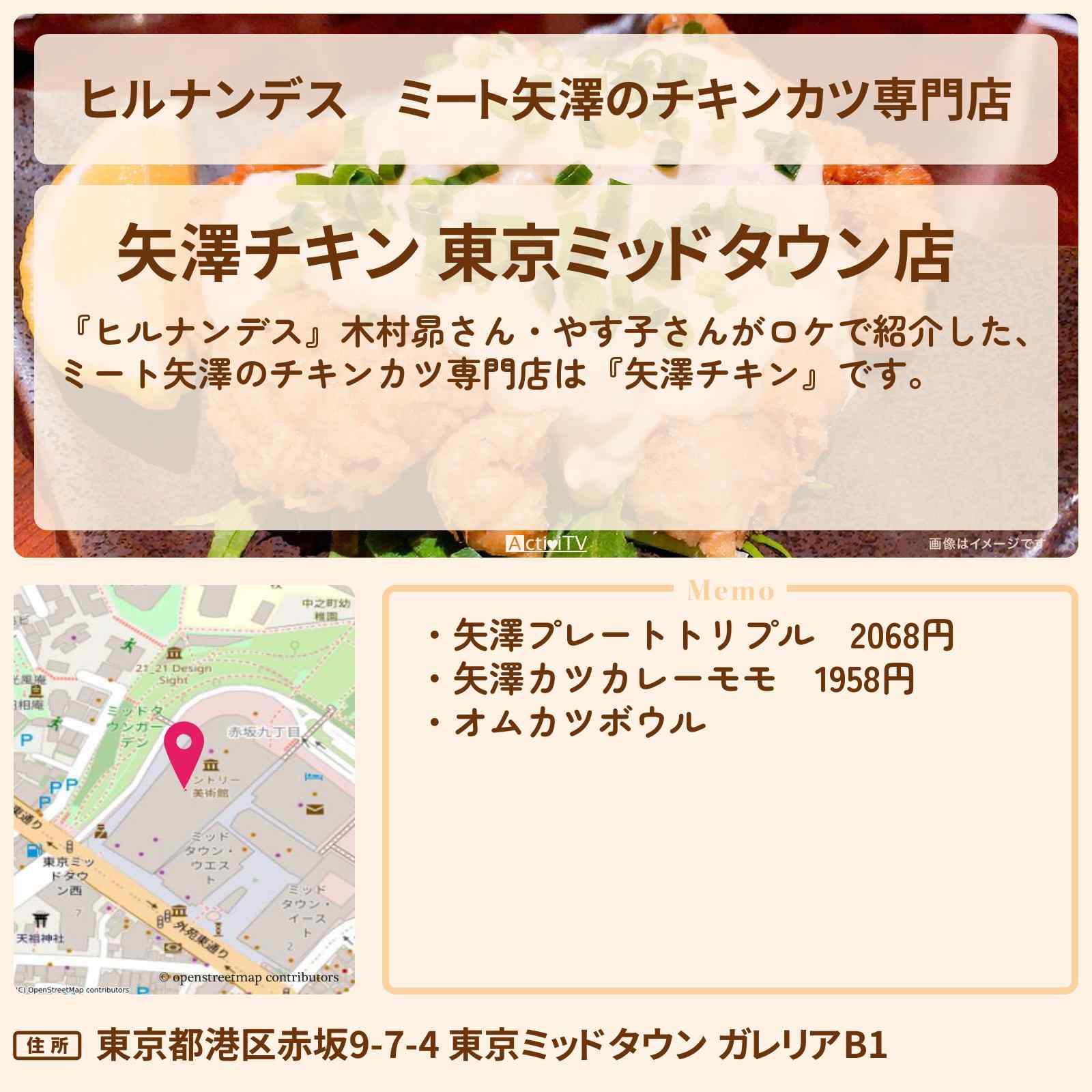 【ヒルナンデス】ミート矢澤のチキンカツ専門店『矢澤チキン』東京ミッドタウンのお店情報