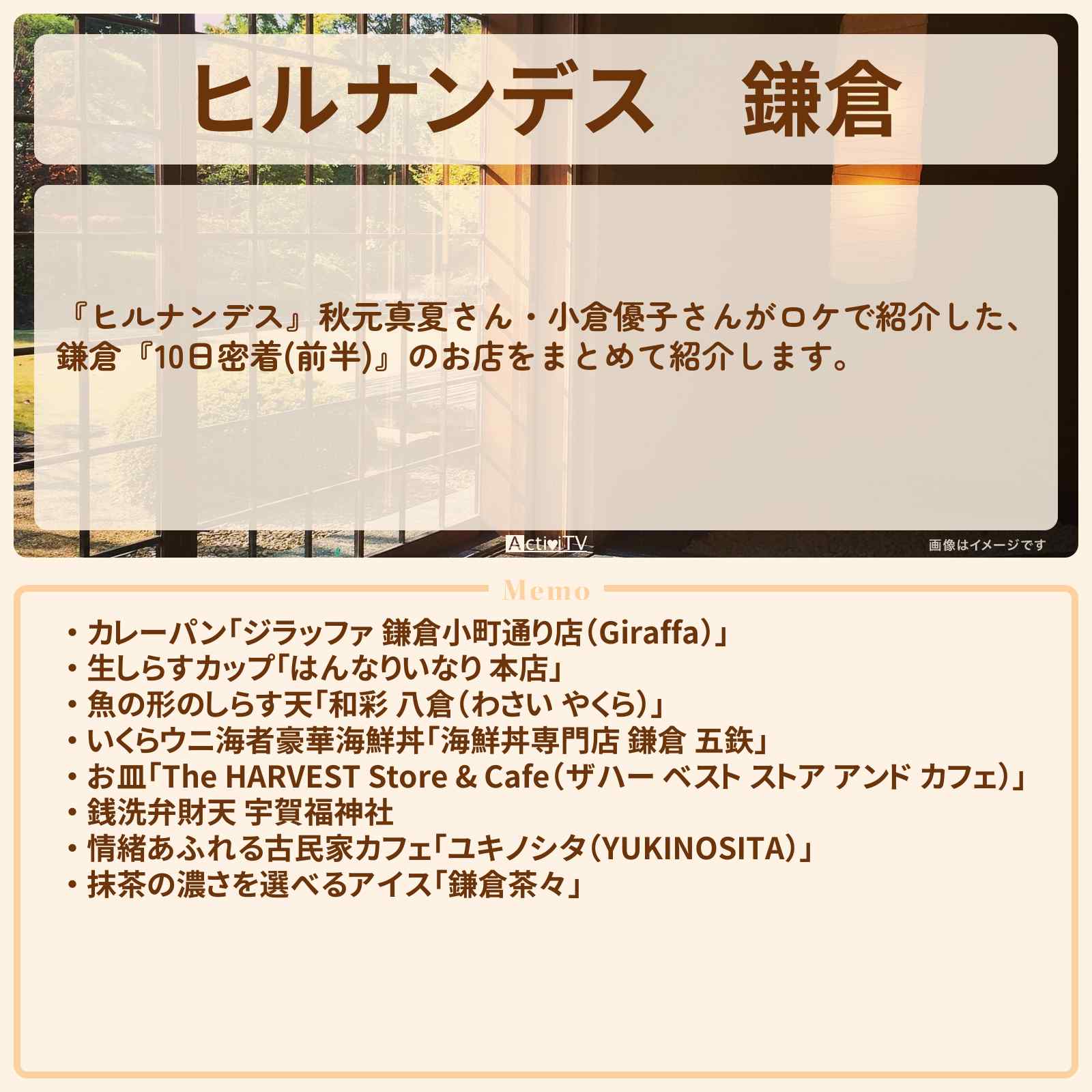 鎌倉『秋元真夏・小倉優子 10日密着(後半)』のロケ地まとめ