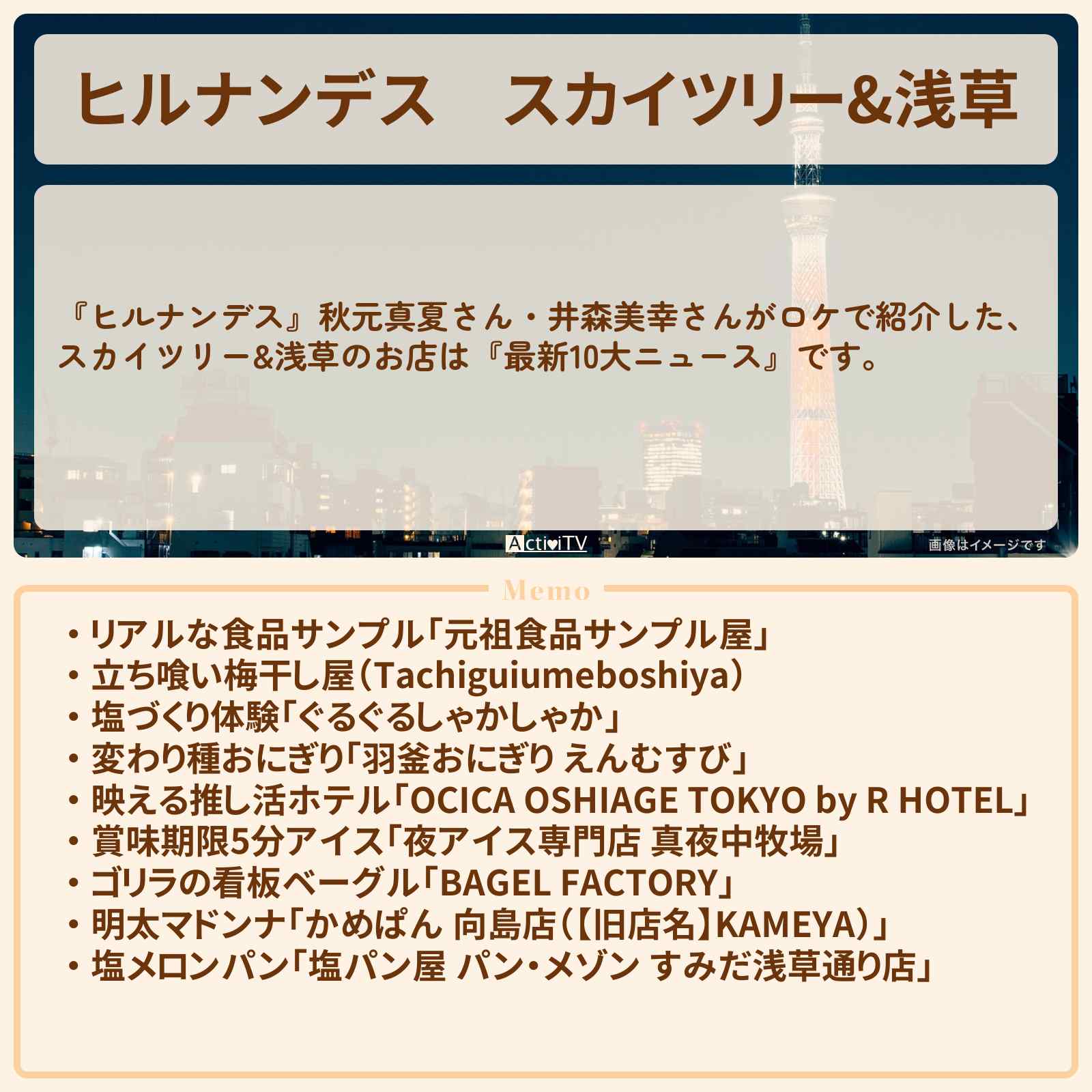 お店がある墨田区吾妻橋は、観光名所からも近く、地元の方だけでなく多くの旅行者にも立ち寄りやすい場所にあります。
