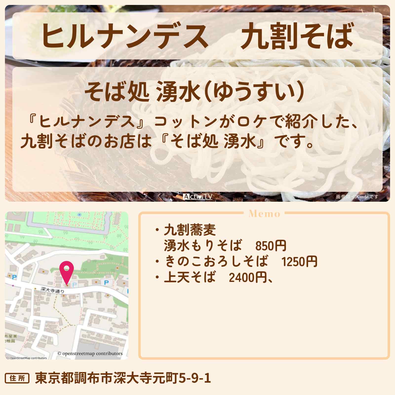 1日1000食!9割そば 調布駅「そば処 湧水(ゆうすい)」