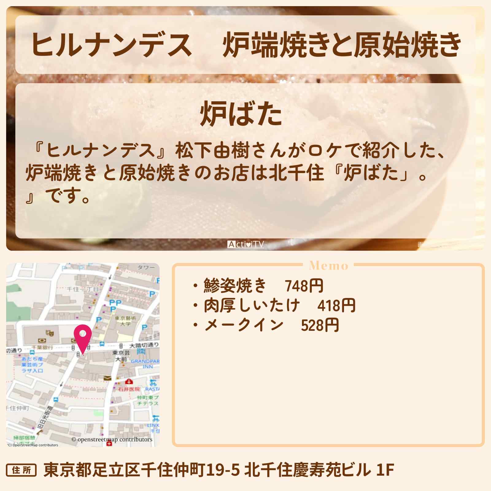 炉端焼きと原始焼き 北千住駅「炉ばた」。(ロバタカド)」