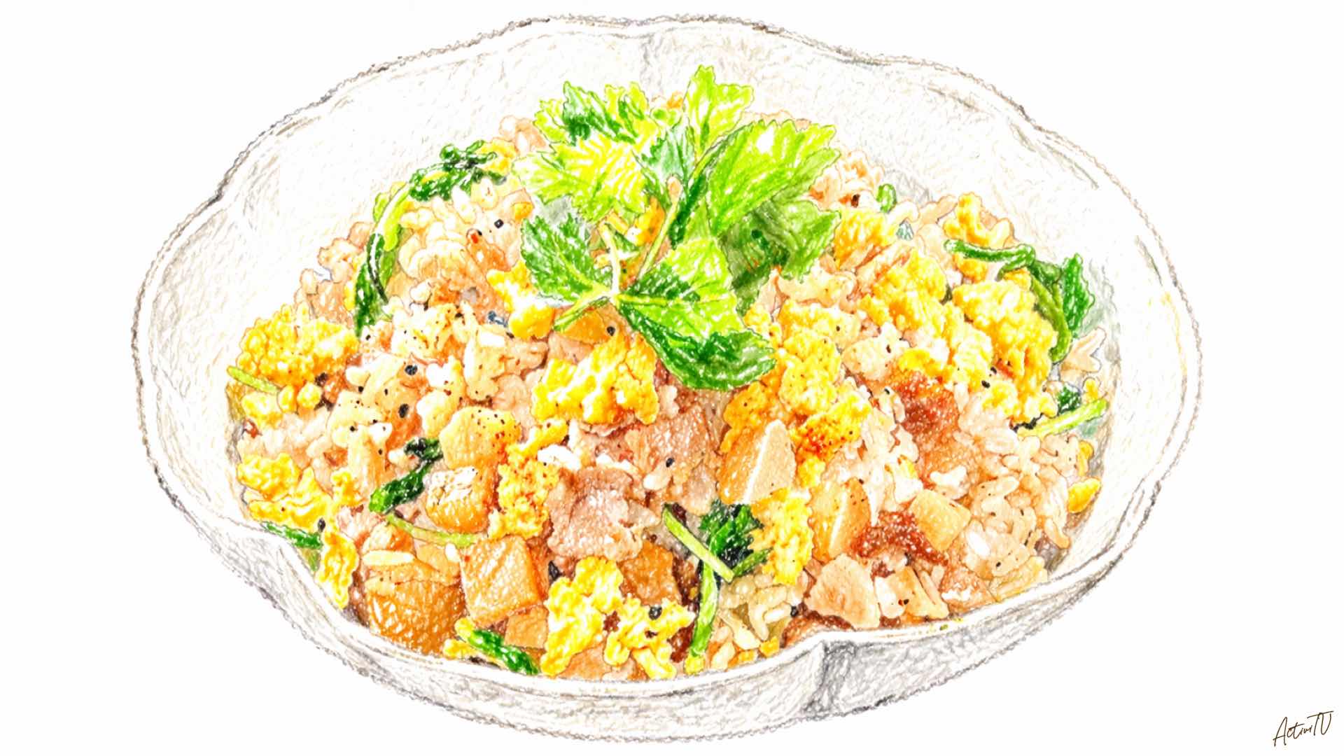 たけのこの軽やかな歯ざわりと、香ばしく炒めた豚バラ肉のうまみがご飯にしみ込む、満足感のある混ぜご飯です。しょうがの爽やかな香りが全体を引き締め、オイスターソース入りの甘辛だれで奥行きのある味わいに仕上がります。