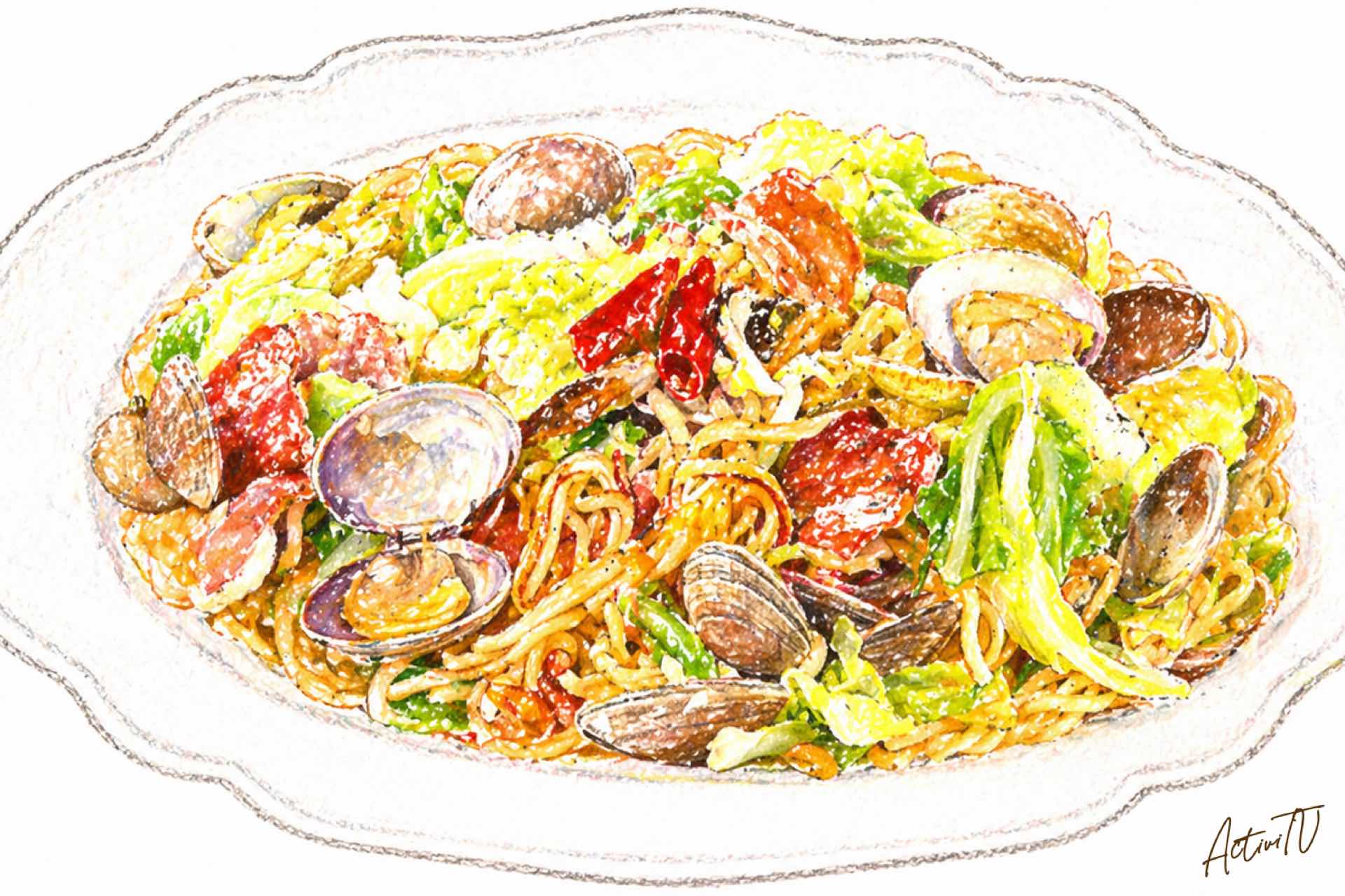 あさりの旨みを麺にたっぷり吸わせる、ほったらかしで作れる焼きそばです。豚バラ肉のコク、キャベツの甘み、あさりのだしが重なり、シンプルな調味料でも奥行きのある味わいに仕上がります。具材を順に重ねて蒸し焼きにするだけなので、炒め続ける手間が少なく、麺はふっくら、あさりはふっくらと加熱できます。