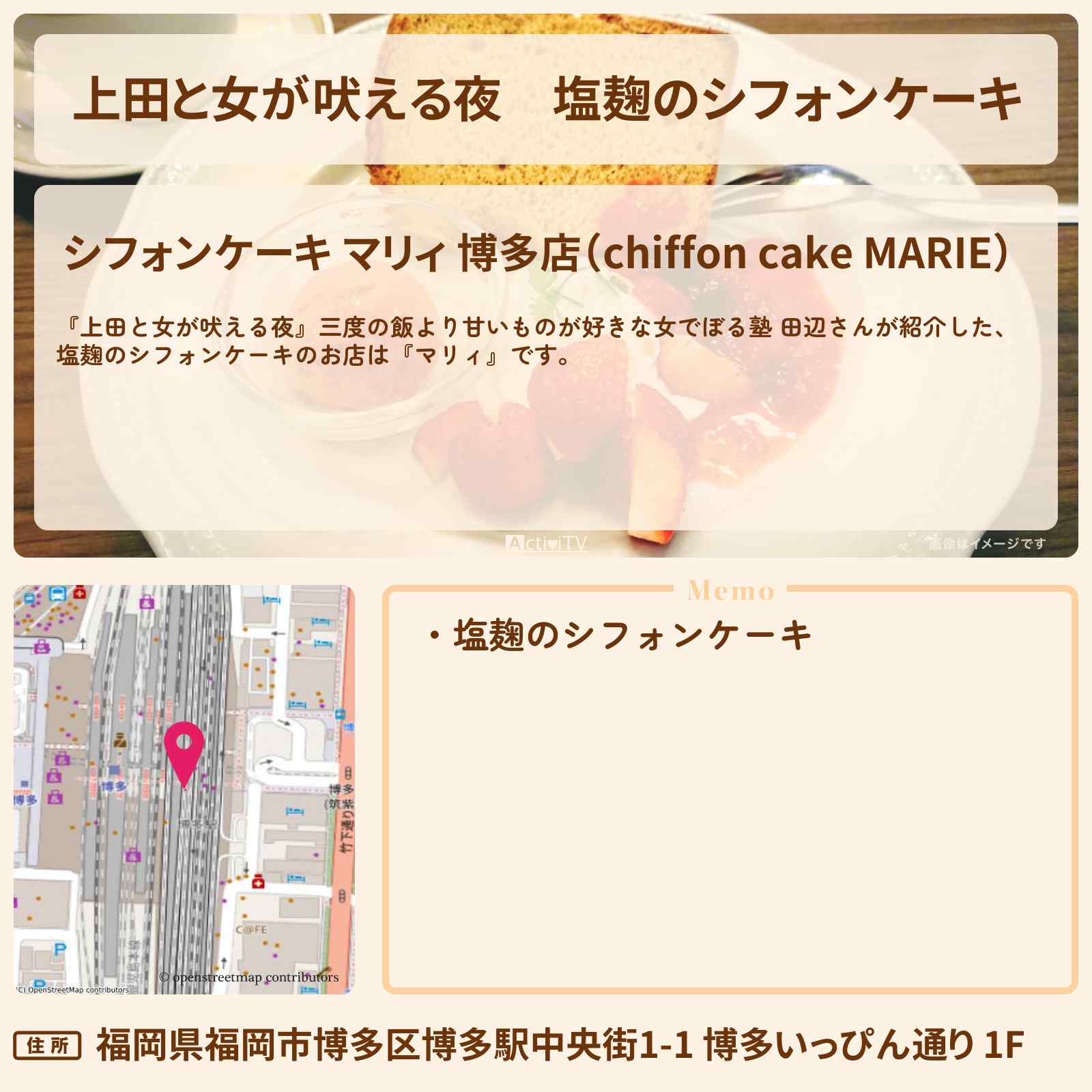 博多駅「シフォンケーキ マリィ 博多店(chiffon cake MARIE)」