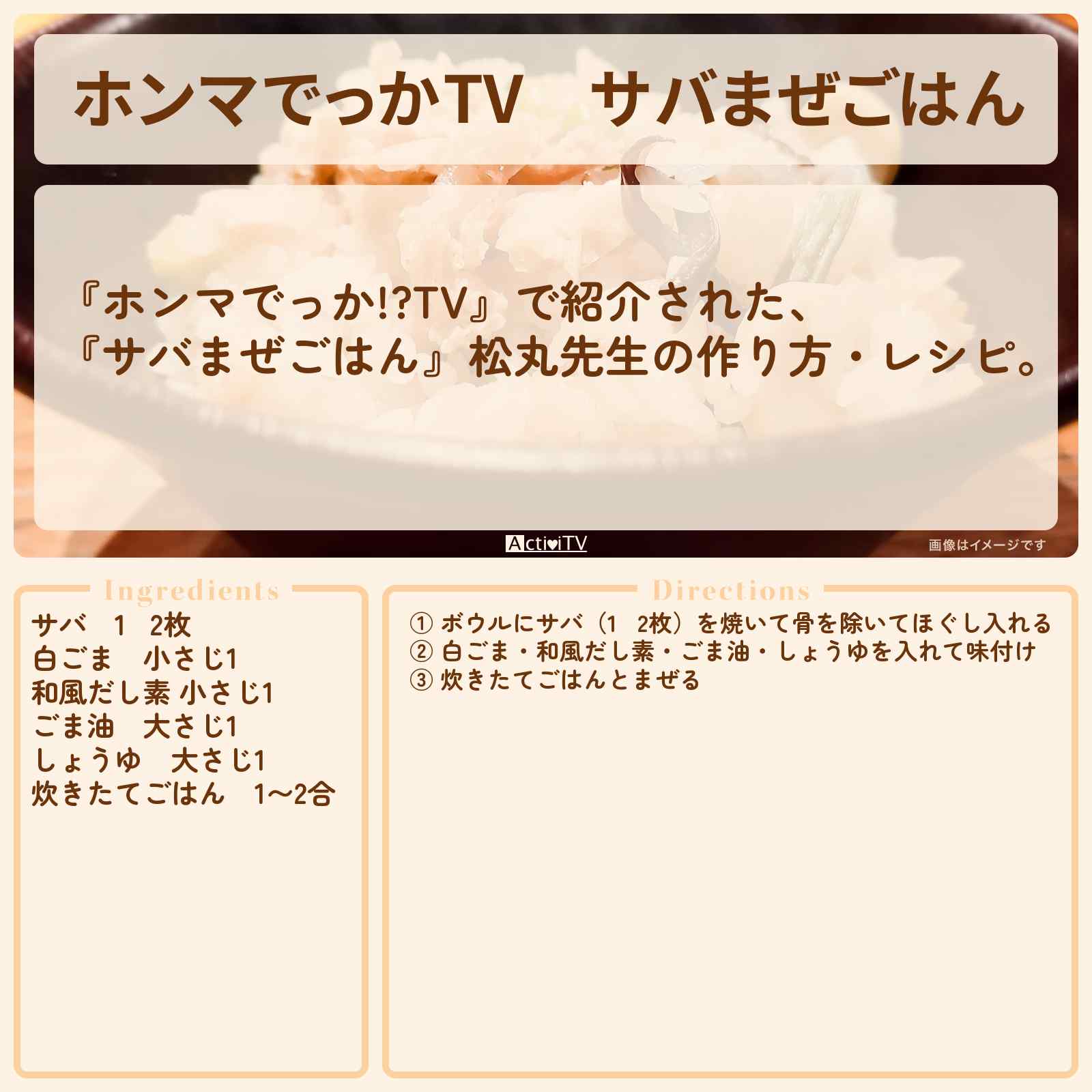 (水)放送の【ホンマでっか!?TV】で紹介された、『サバまぜごはん』松丸先生の作り方・レシピ。