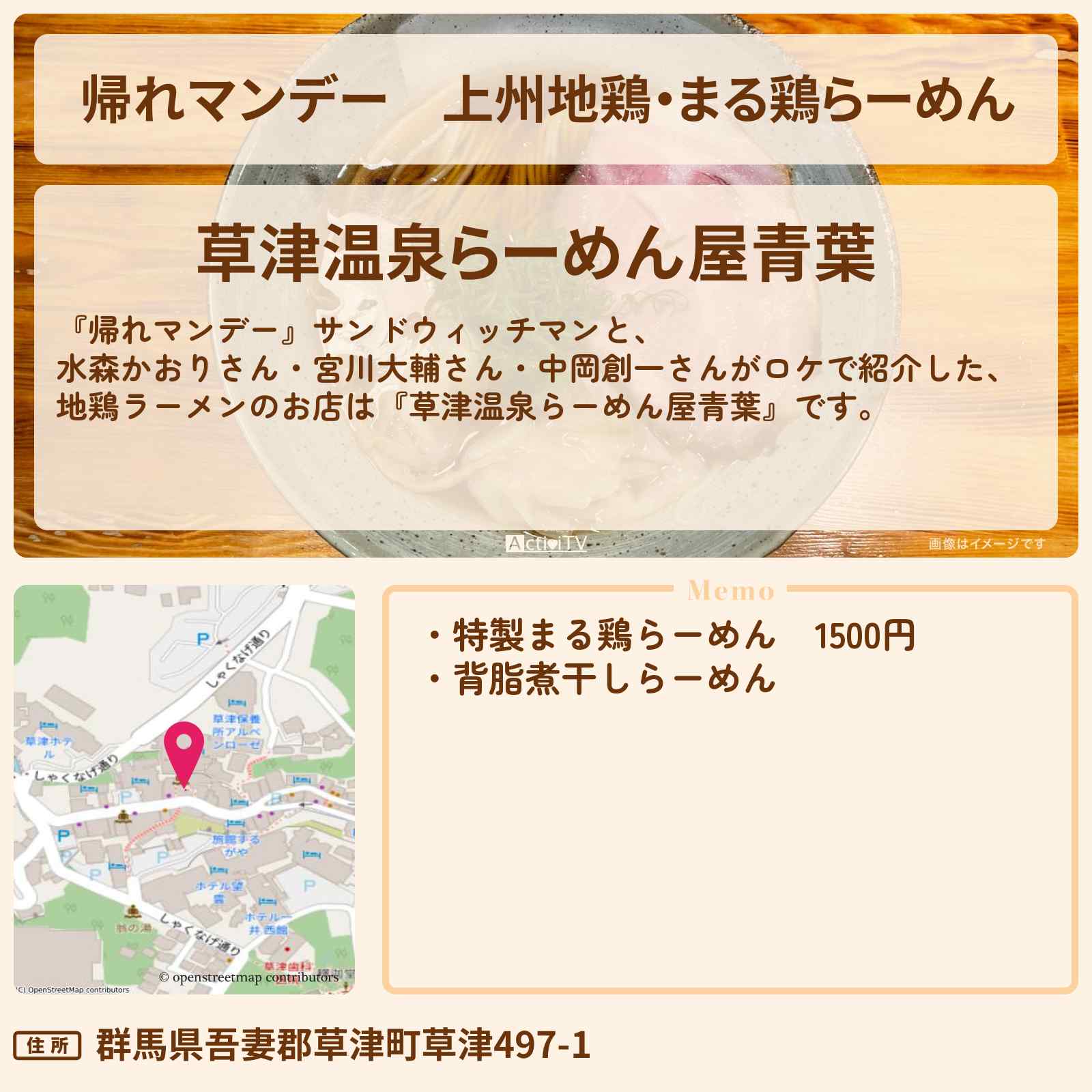 地鶏ラーメン「草津温泉らーめん屋青葉」