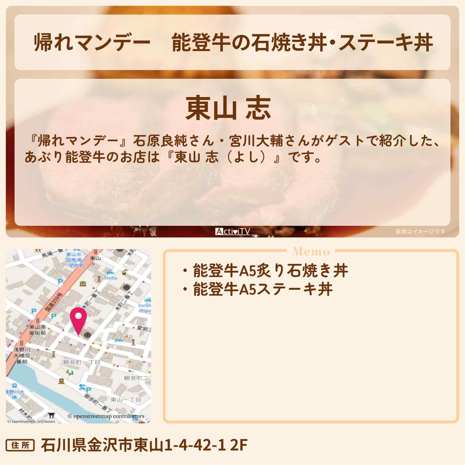 | 住所 | 石川県金沢市東山1-4-42-1 2F |