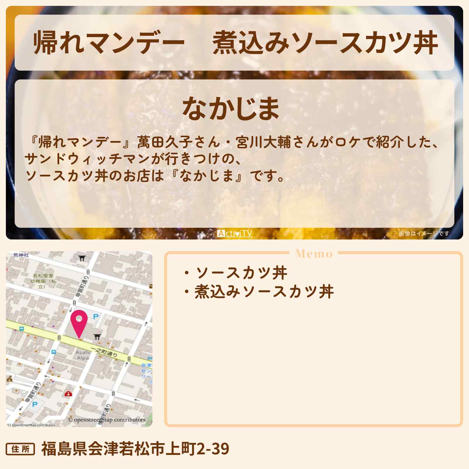 全体として、なかじまは「煮込み」スタイルにこだわりつつも、定番のキャベツソースカツ丼や海老フライ丼、期間限定メニューなどバラエティも豊かです。いずれも地元産の素材を活かし、会津の味をやさしく伝える料理として構成されています。店内は創業当時の趣を残しつつ清潔感があり、一人でもグループでも心地よく過ごせる雰囲気です